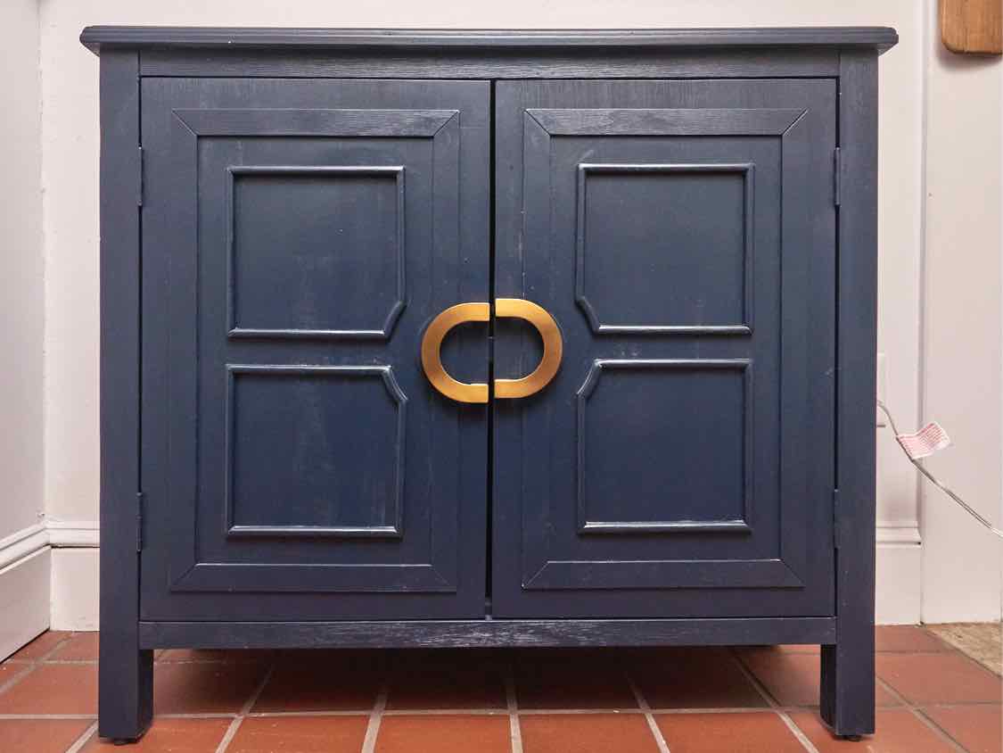 Royal Blue Finish 2 Door Storage Piece with Gold Handle Pulls