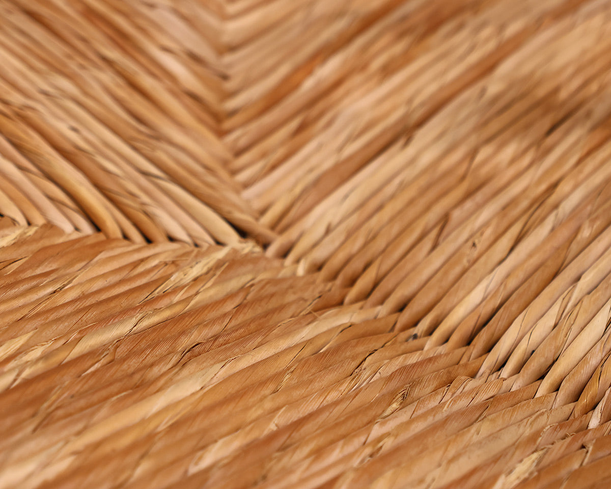 White bench w/ spindel back and woven rush seat