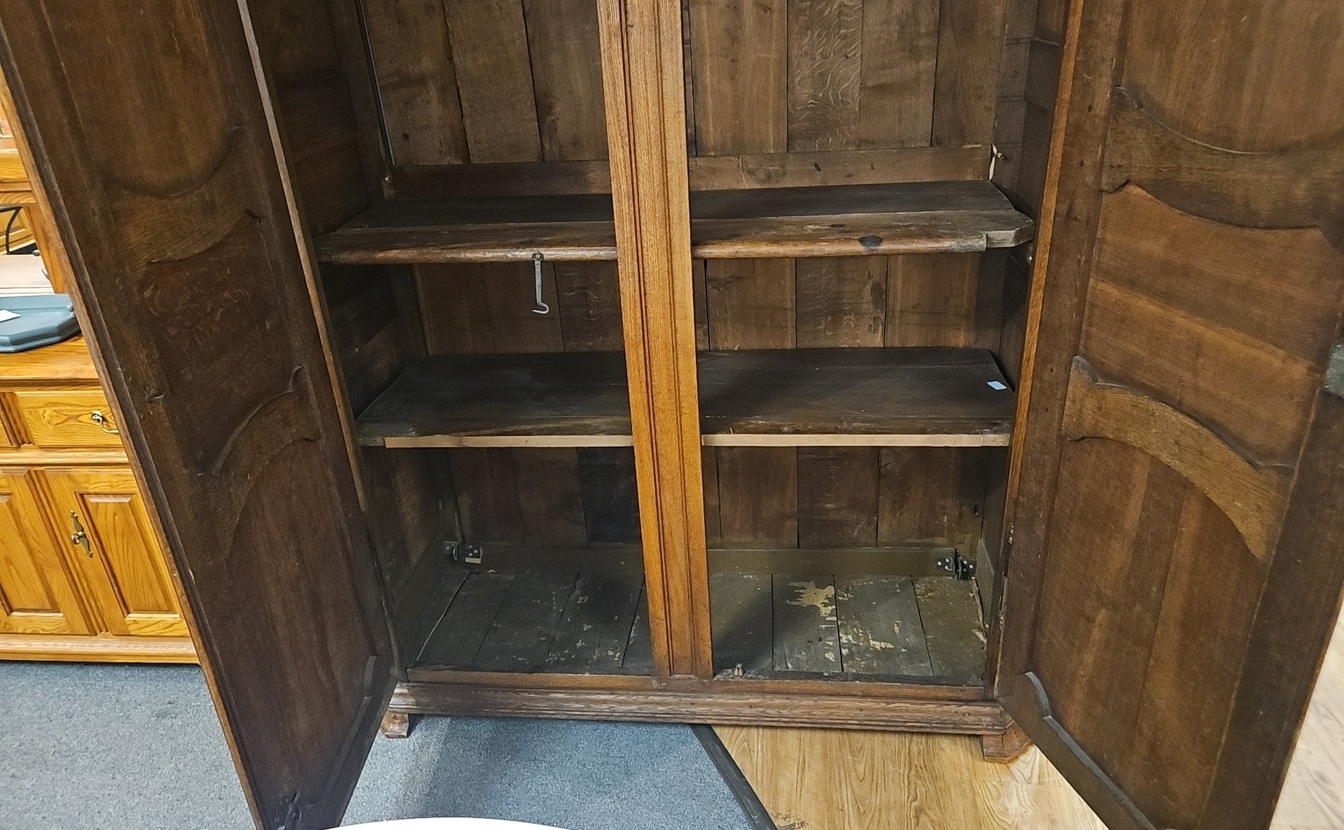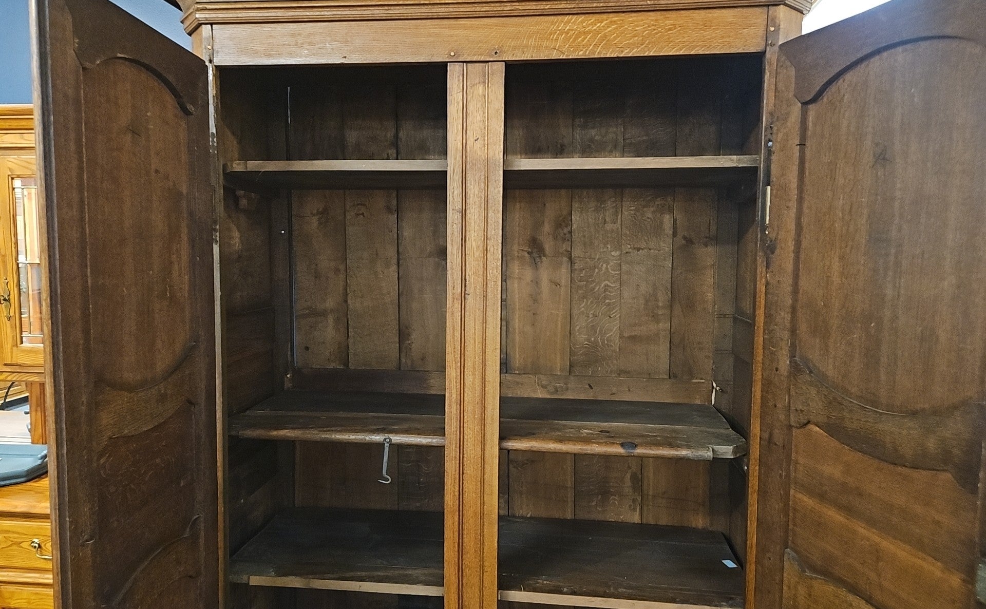 Antique walnut armoire w/ 3 shelves and panel detailing