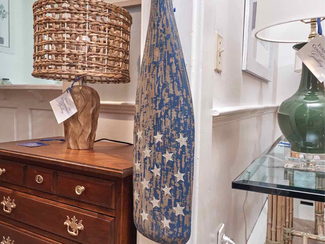 Distressed Blue & Cream Stars Finish Wooden Oar
