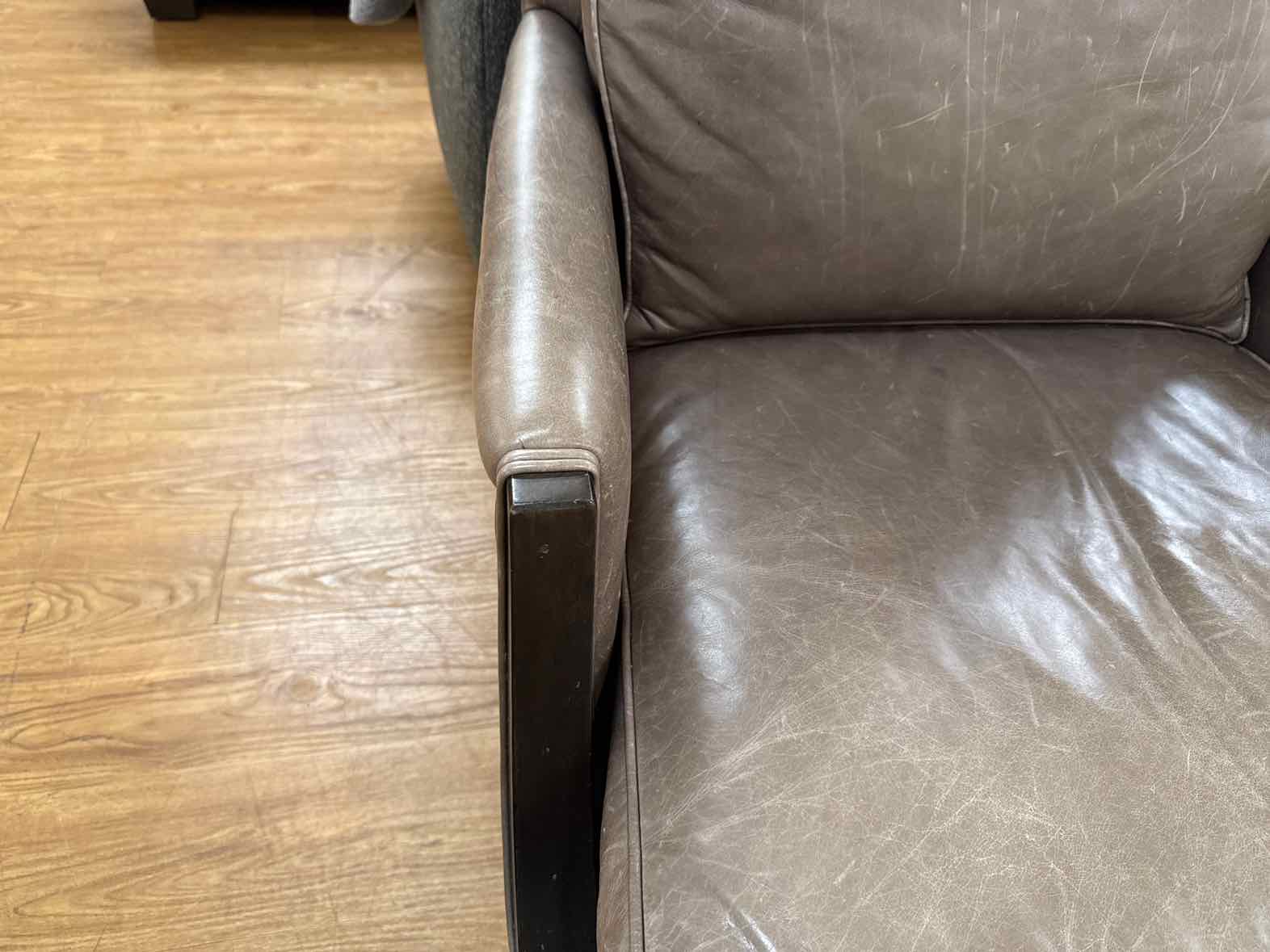Pair of 'Grayson' lounge chairs in Omni Charcoal leather with Raisin wood frame, graphic frame back