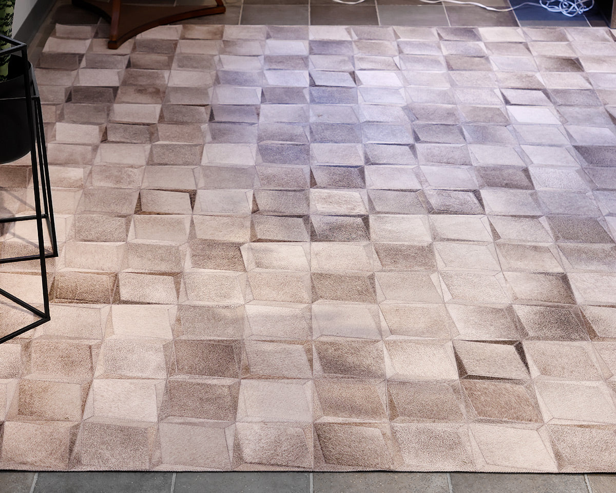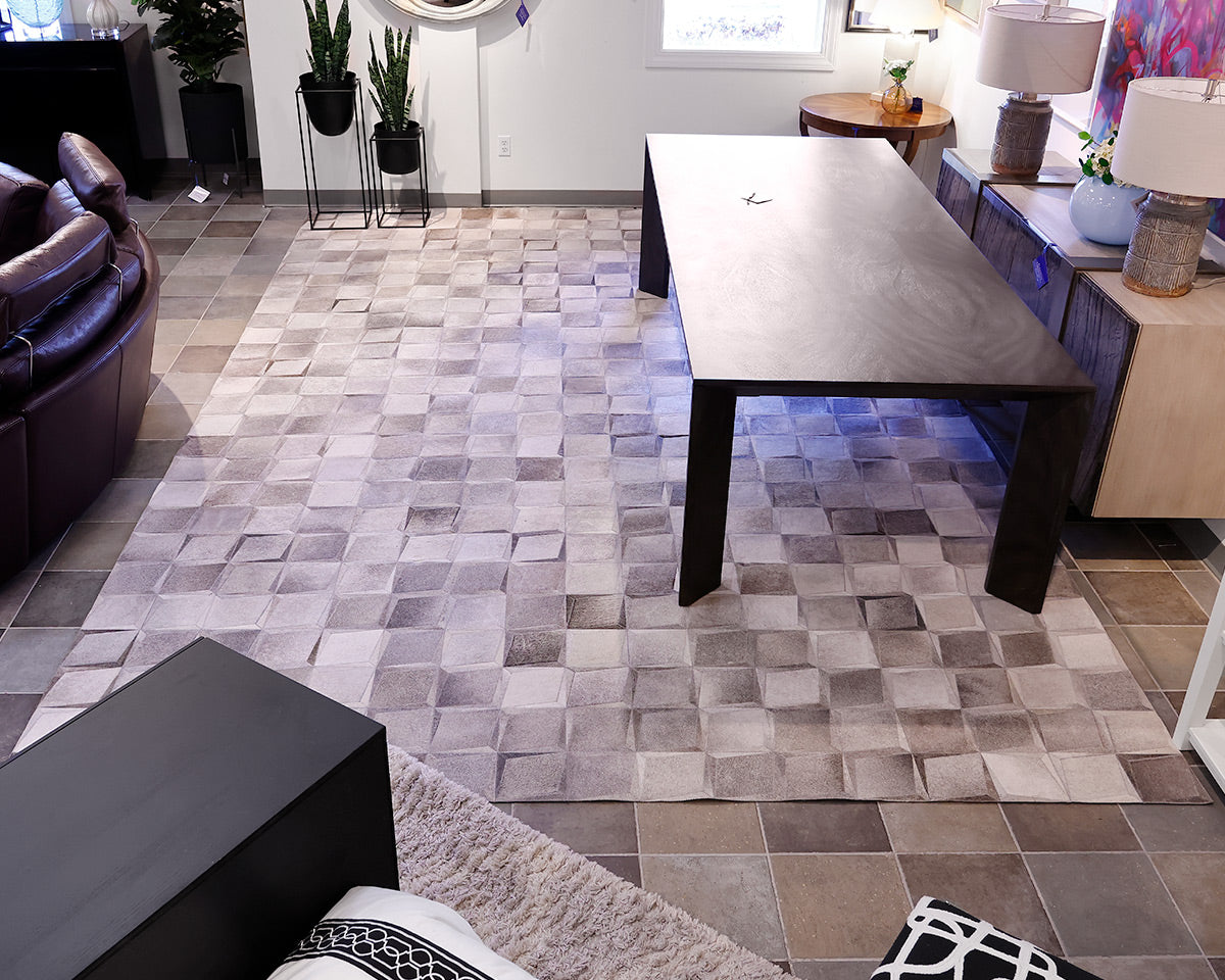 Gray Hair on Hide 10' x 16' Area Rug. Geometric Squares.