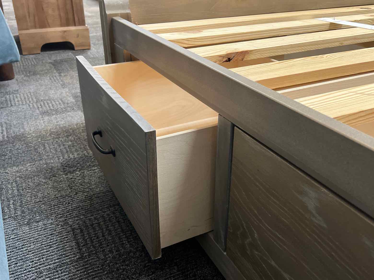 Vaughan Bassett 'Transitions' king storage bed w/ 3 drawers in driftwood oak (hb, fb, rails, slats)