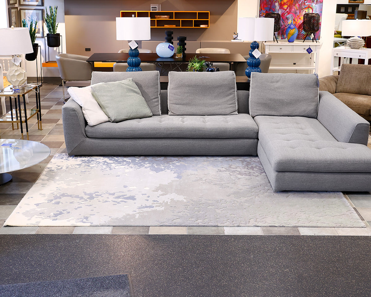 Crazed blue-toned wave rug, made with 100% new zealand wool and hand knotted