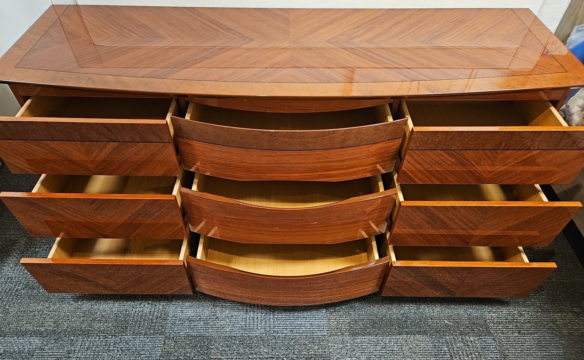 Italian-made high gloss lacquer 9-drawer dresser with dual tone wood and inlay