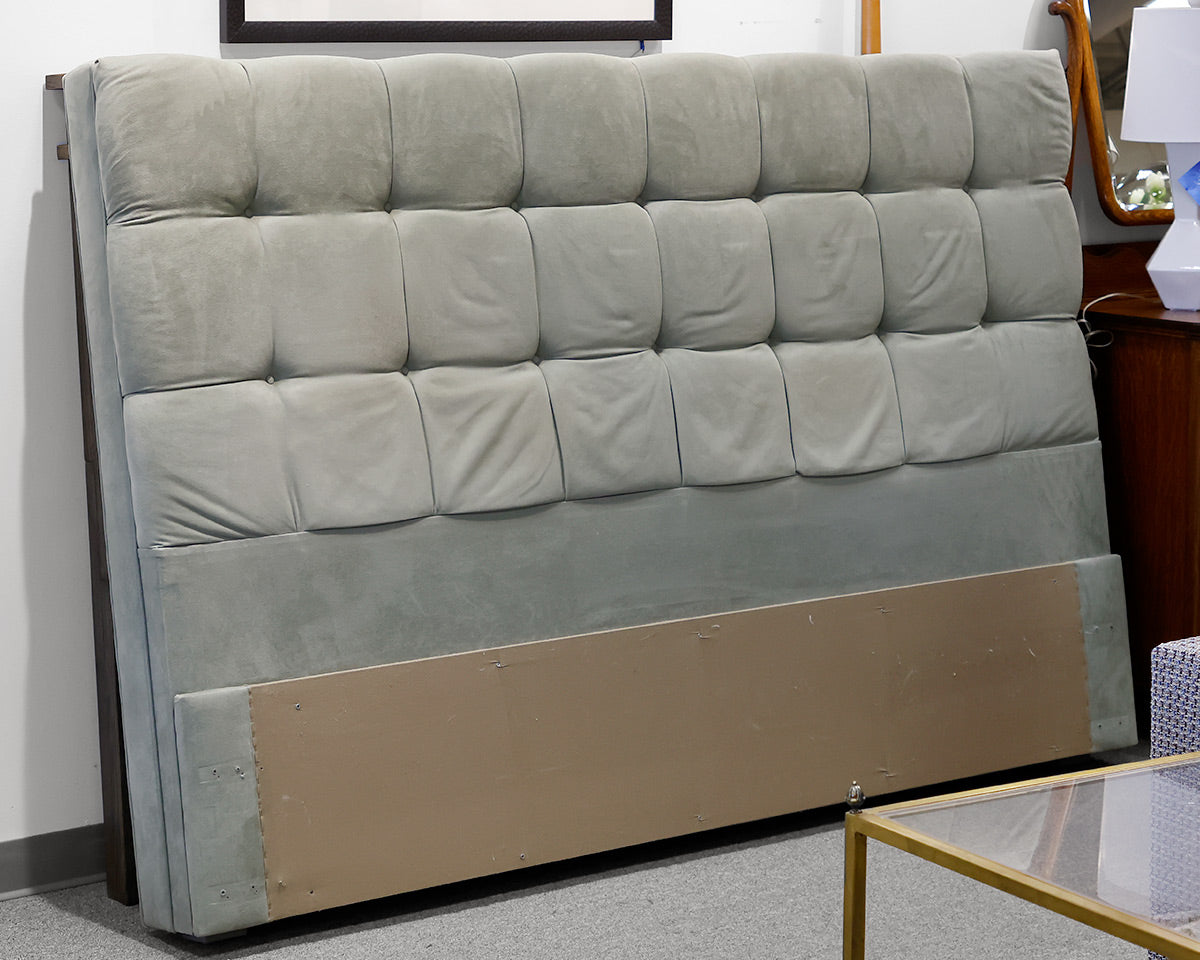 King size tufted headboard in light sage green microsuede