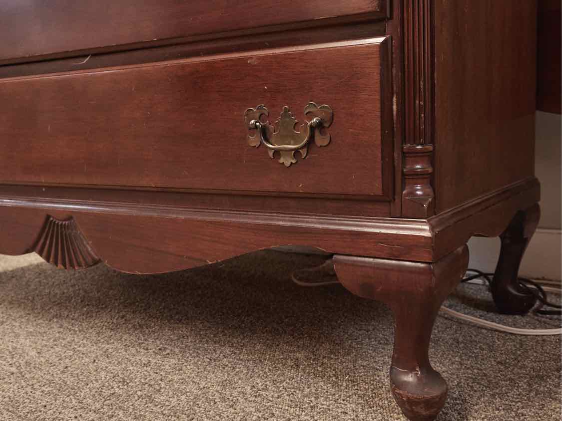 Mahogany 4 Drawer Dresser Queen Anne Style w/Brass Pulls in Rich Finish