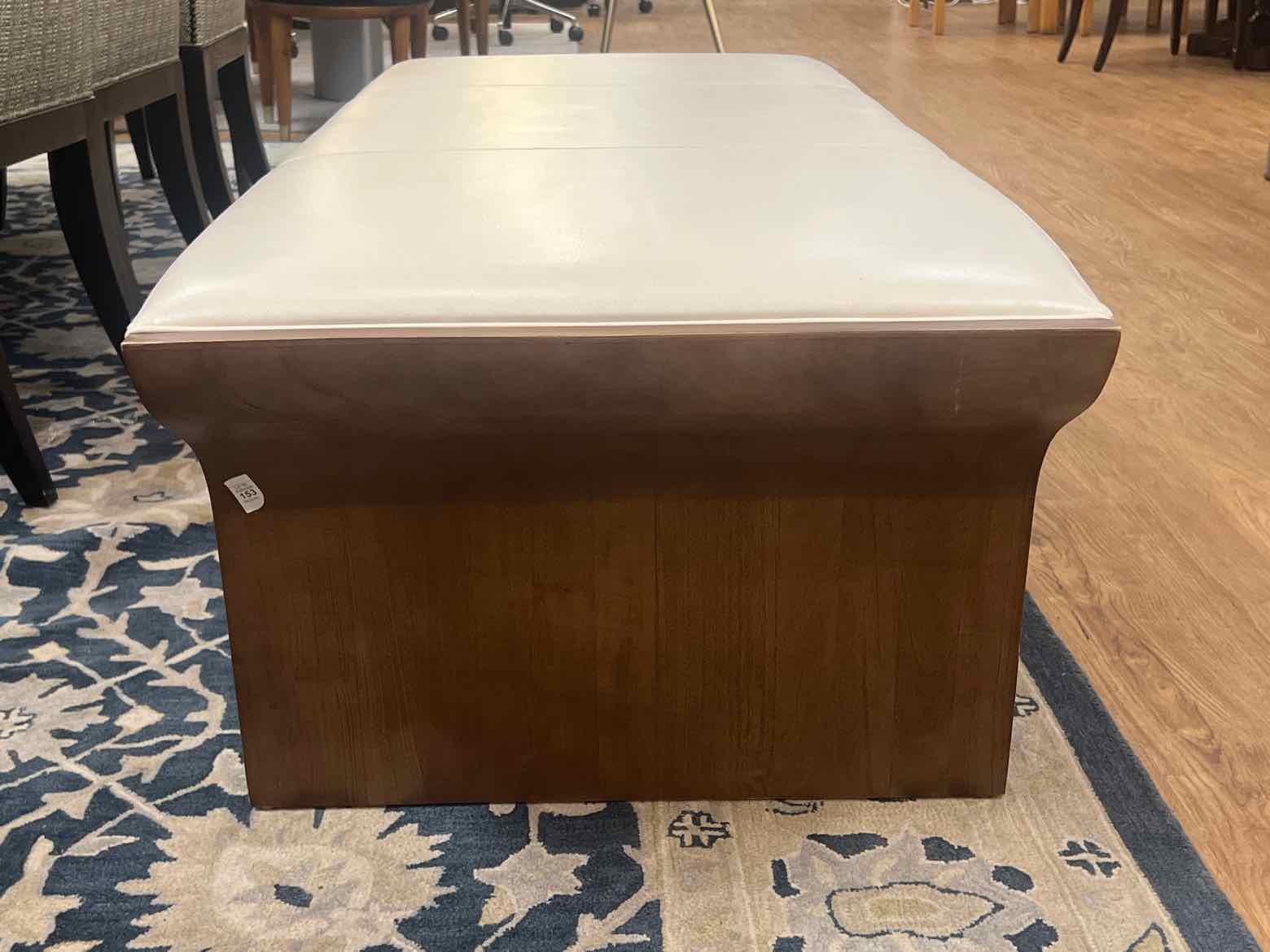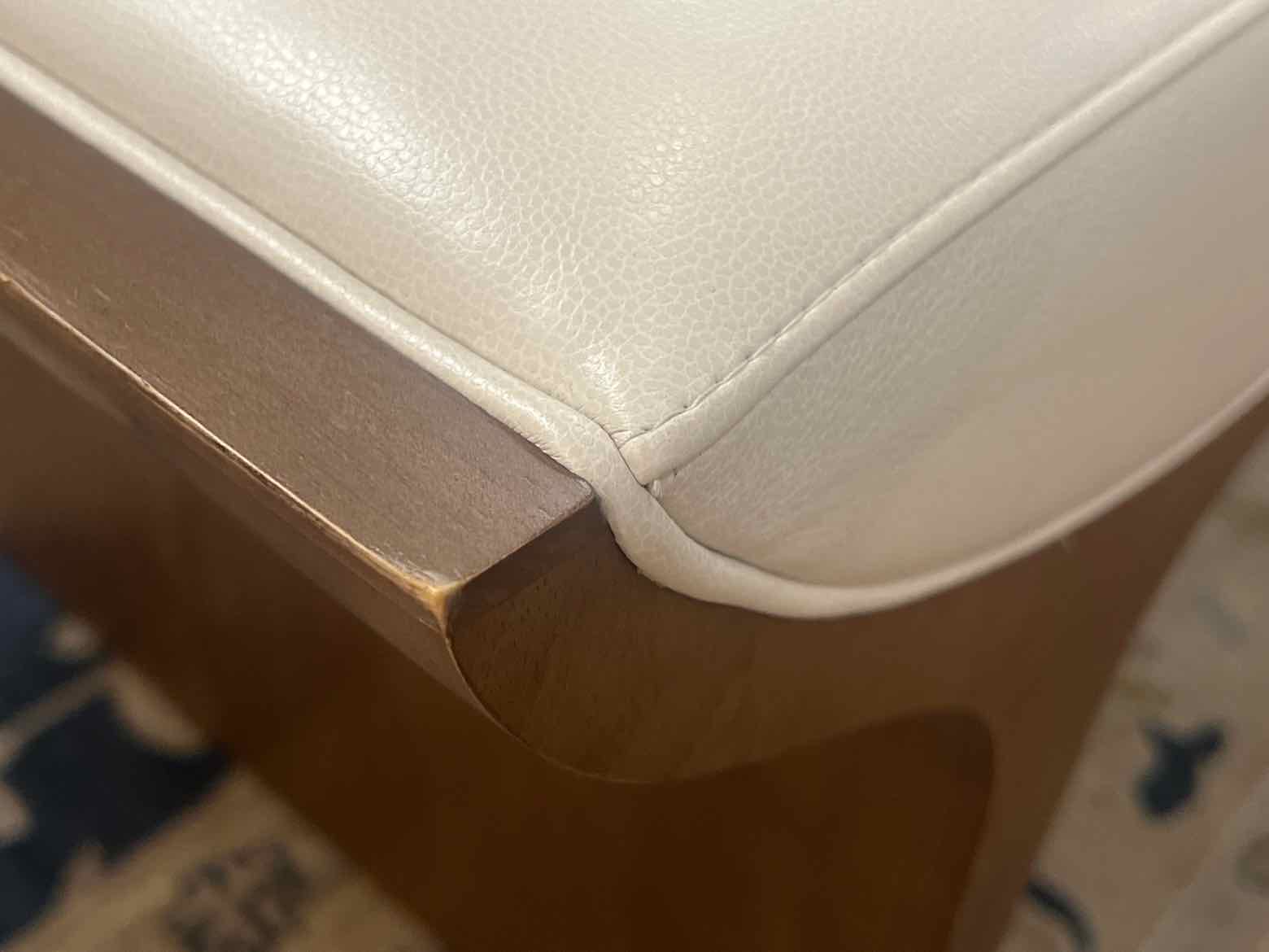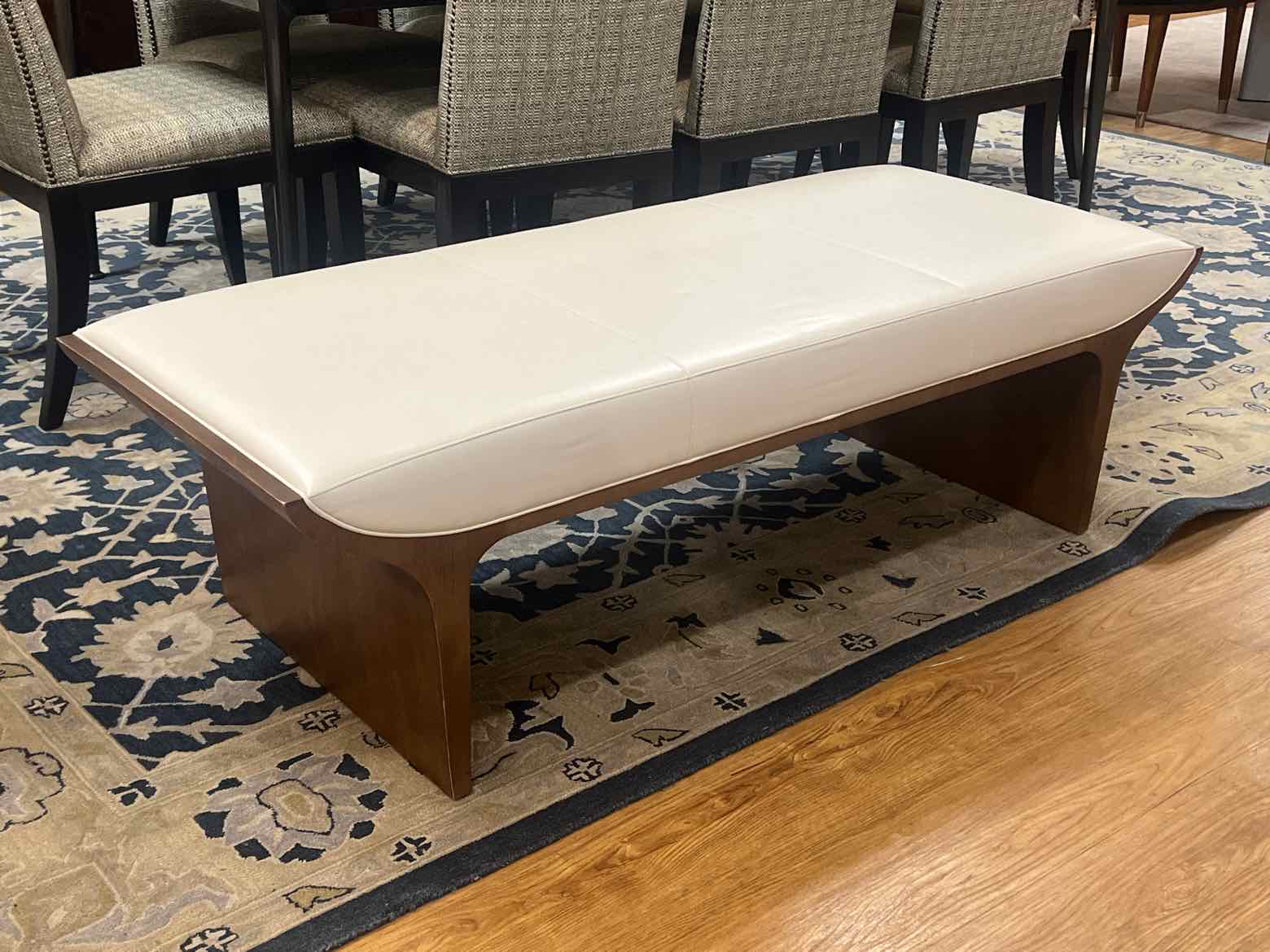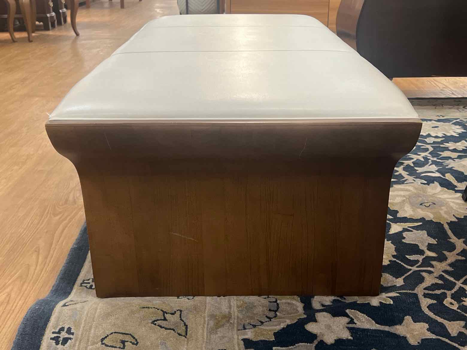 Bernhardt contemporary white leather bench with wooden accents