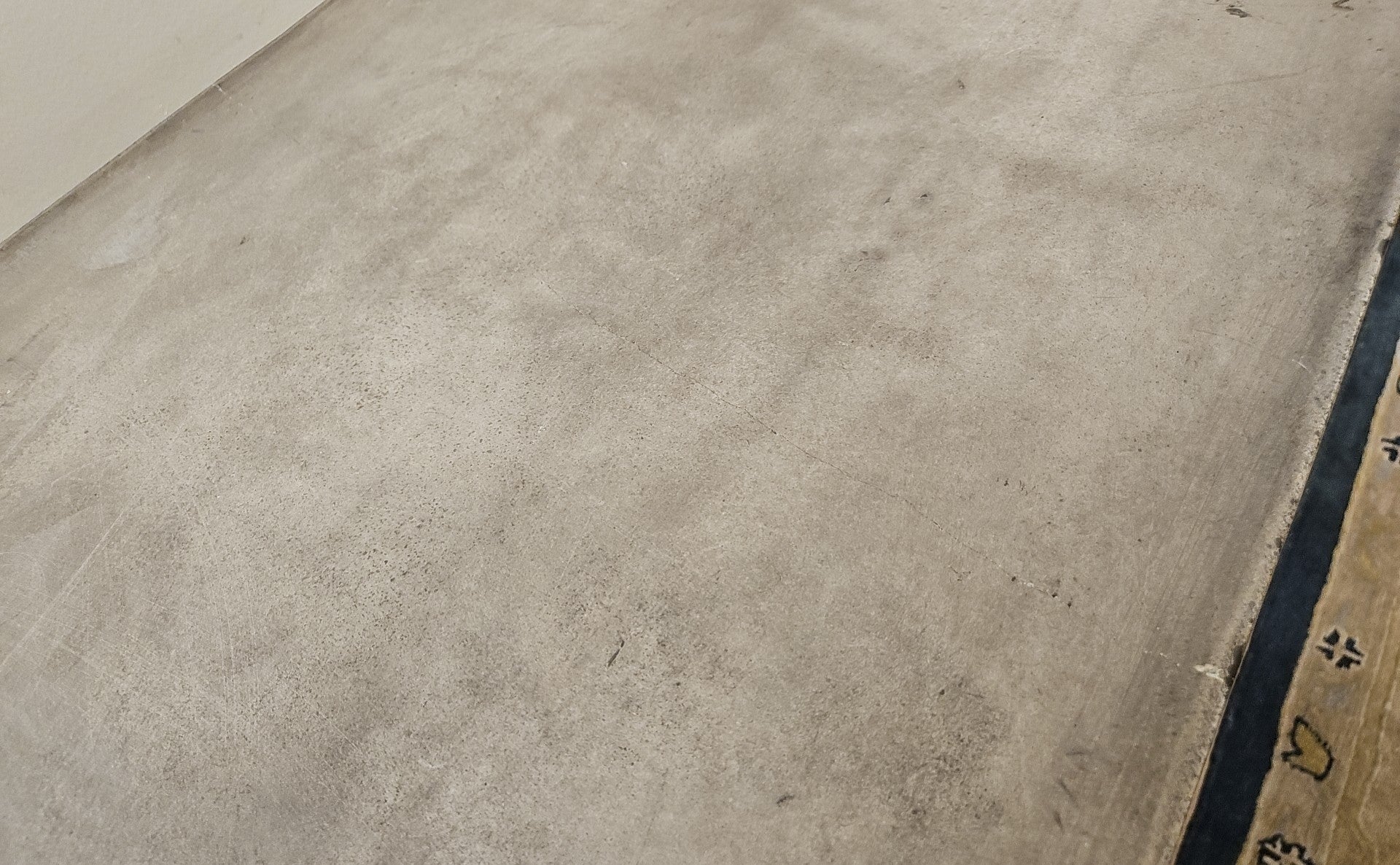 Contemporary sideboard with concrete top, 2 drawers and 3 cabinets, larger cabinet has fixed shelf