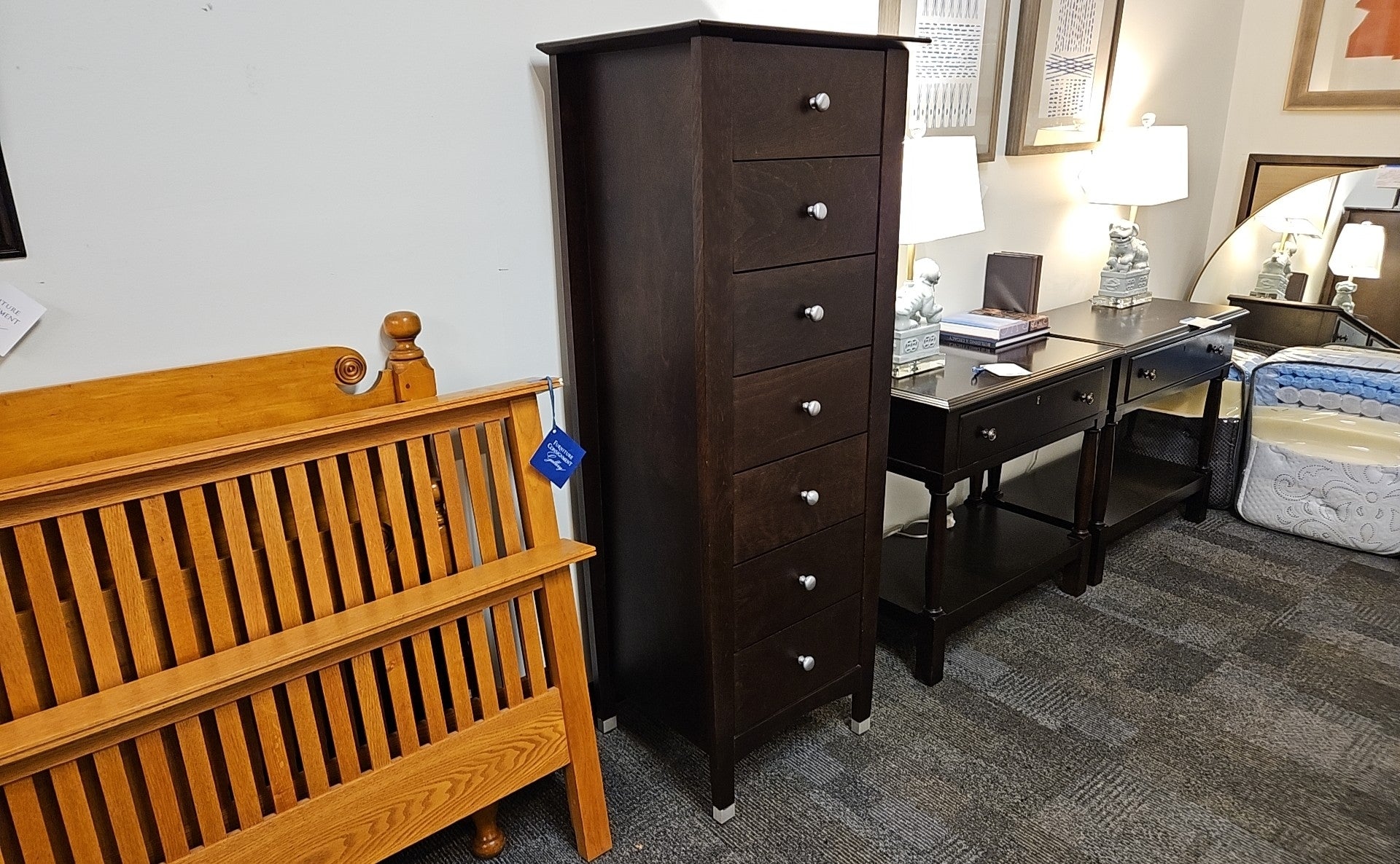 7-Drawer lingerie chest in espresso with nickel hardware and nickel cap on foot