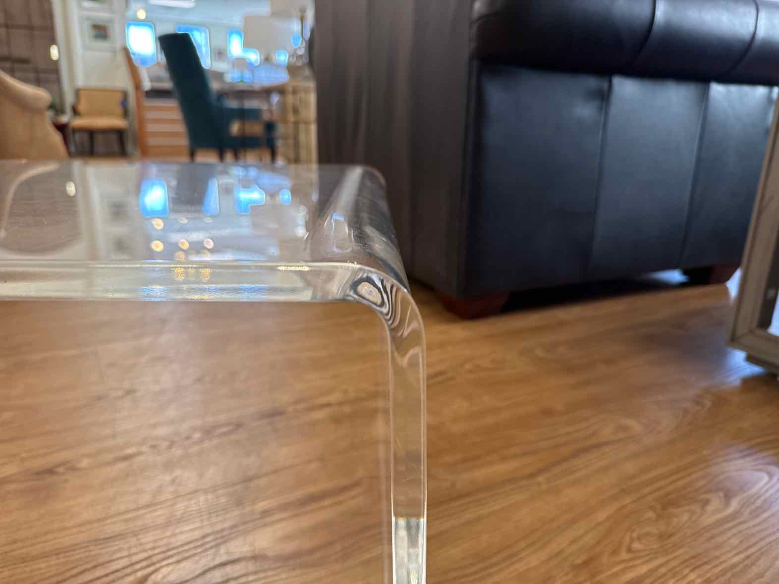 'Peekaboo' clear acrylic C-shaped waterfall cocktail table