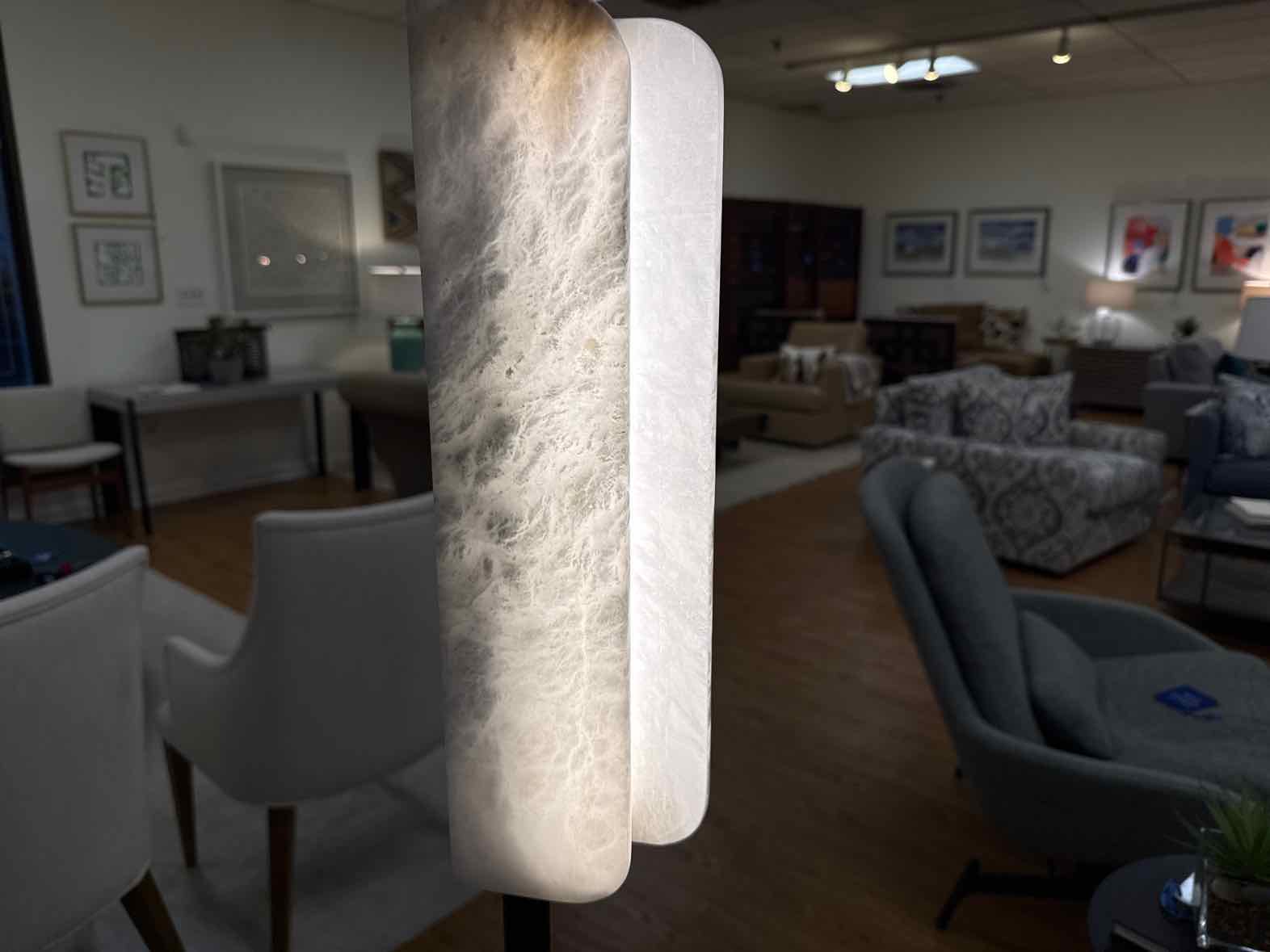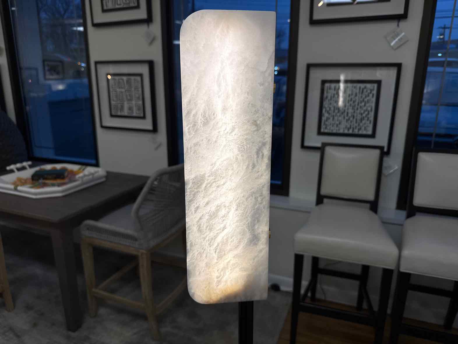 'Years' alabaster glass LED floor lamp with brass pole and black & white marble base