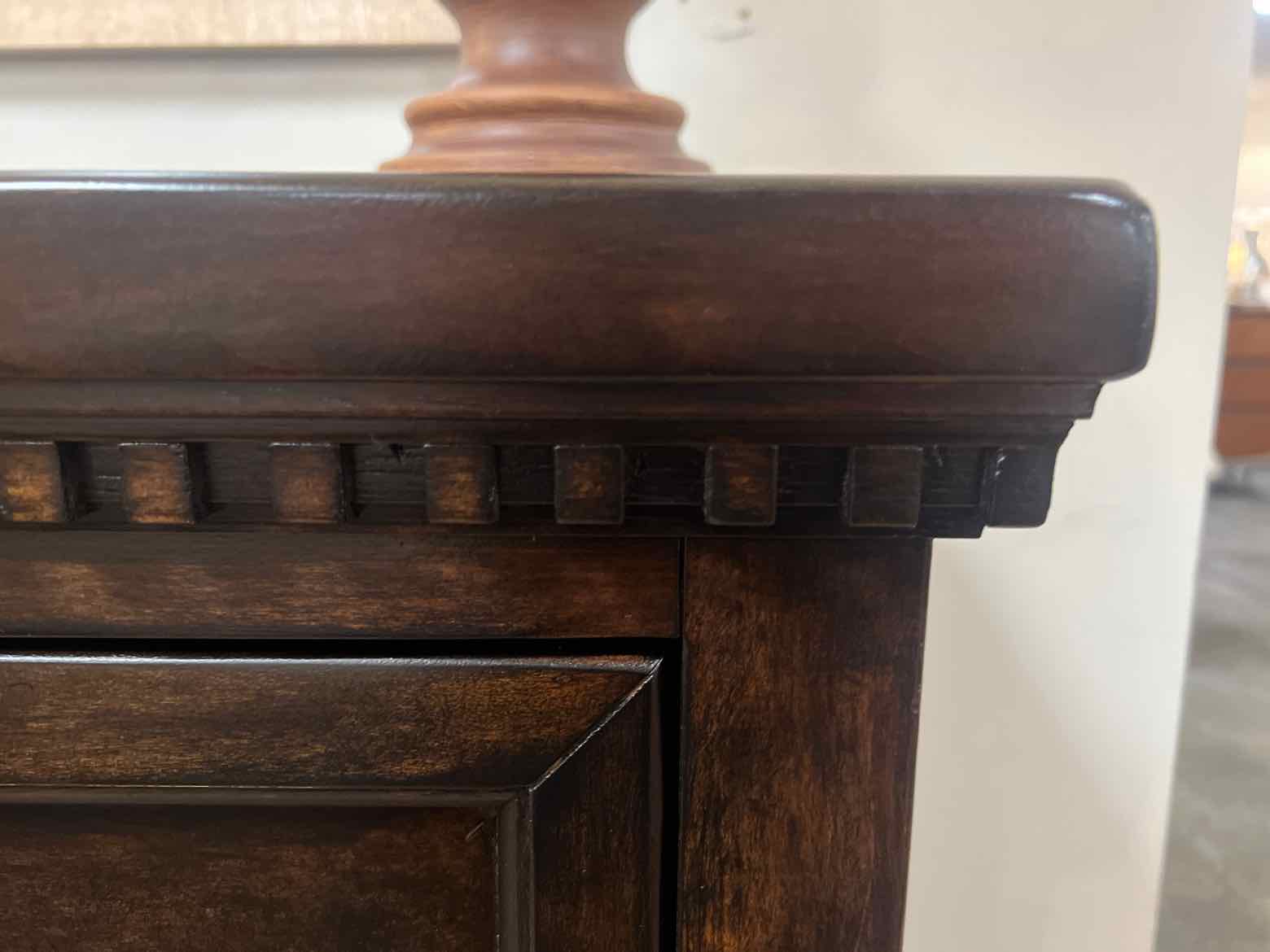 Pottery Barn espresso sideboard w/ 3 drawers, two cabinets and dental moulding