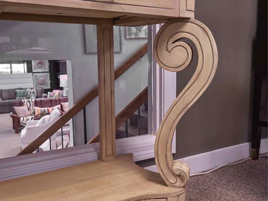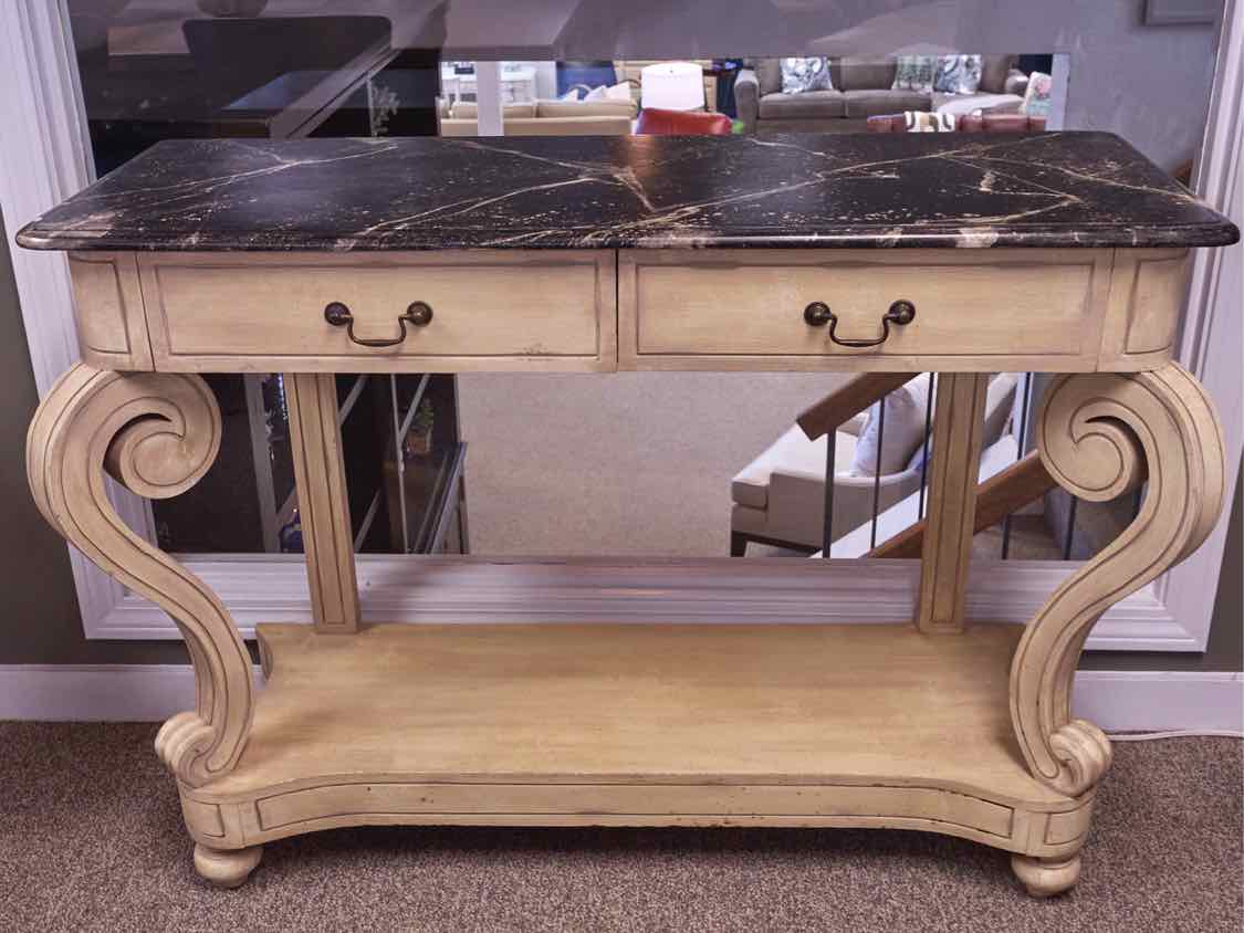 Scrolled Base Console in Antique Yellow with Black Faux Marble Top