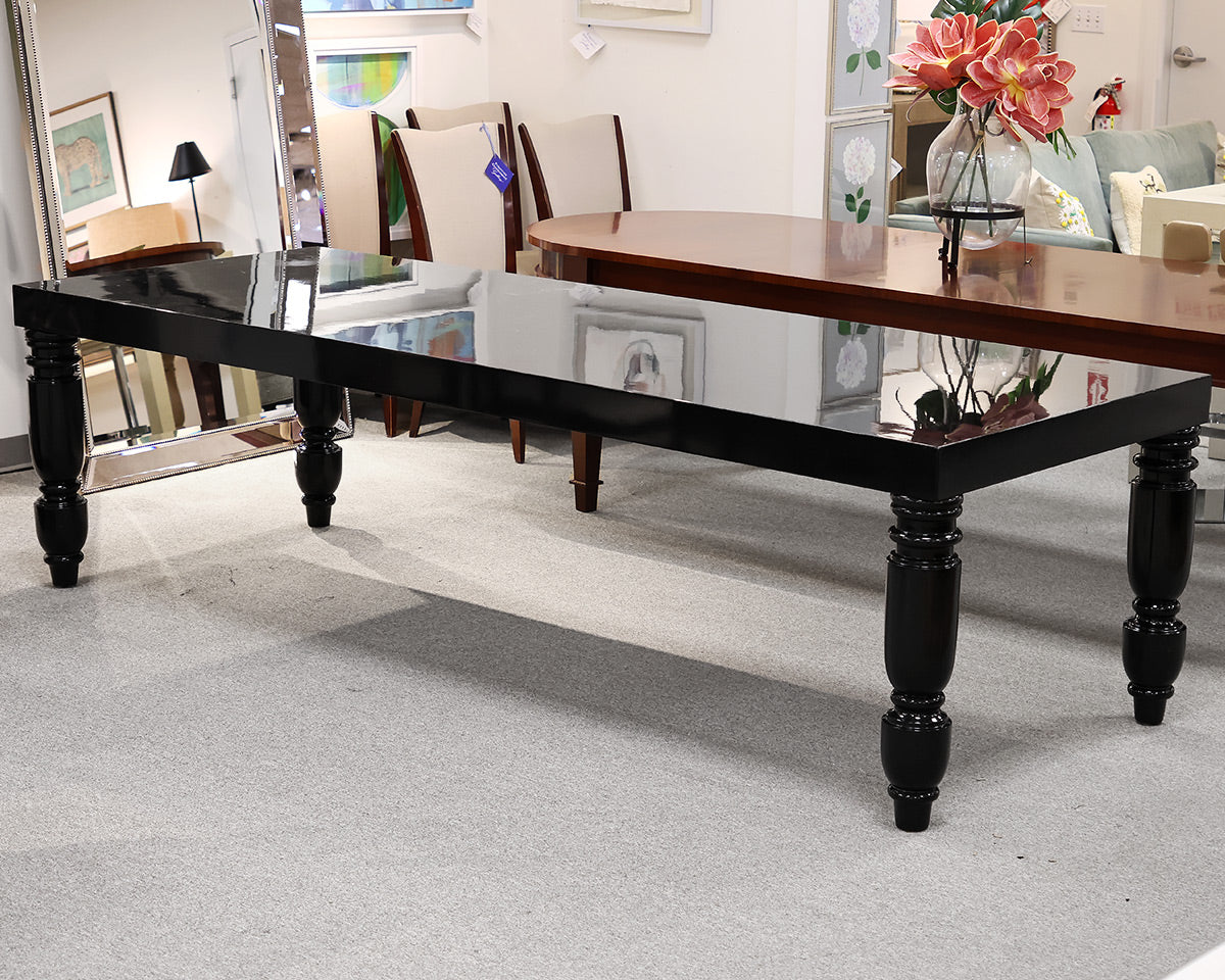 Black Lacquer Dining Table With Turned Legs. **3rd Party Delivery Required**