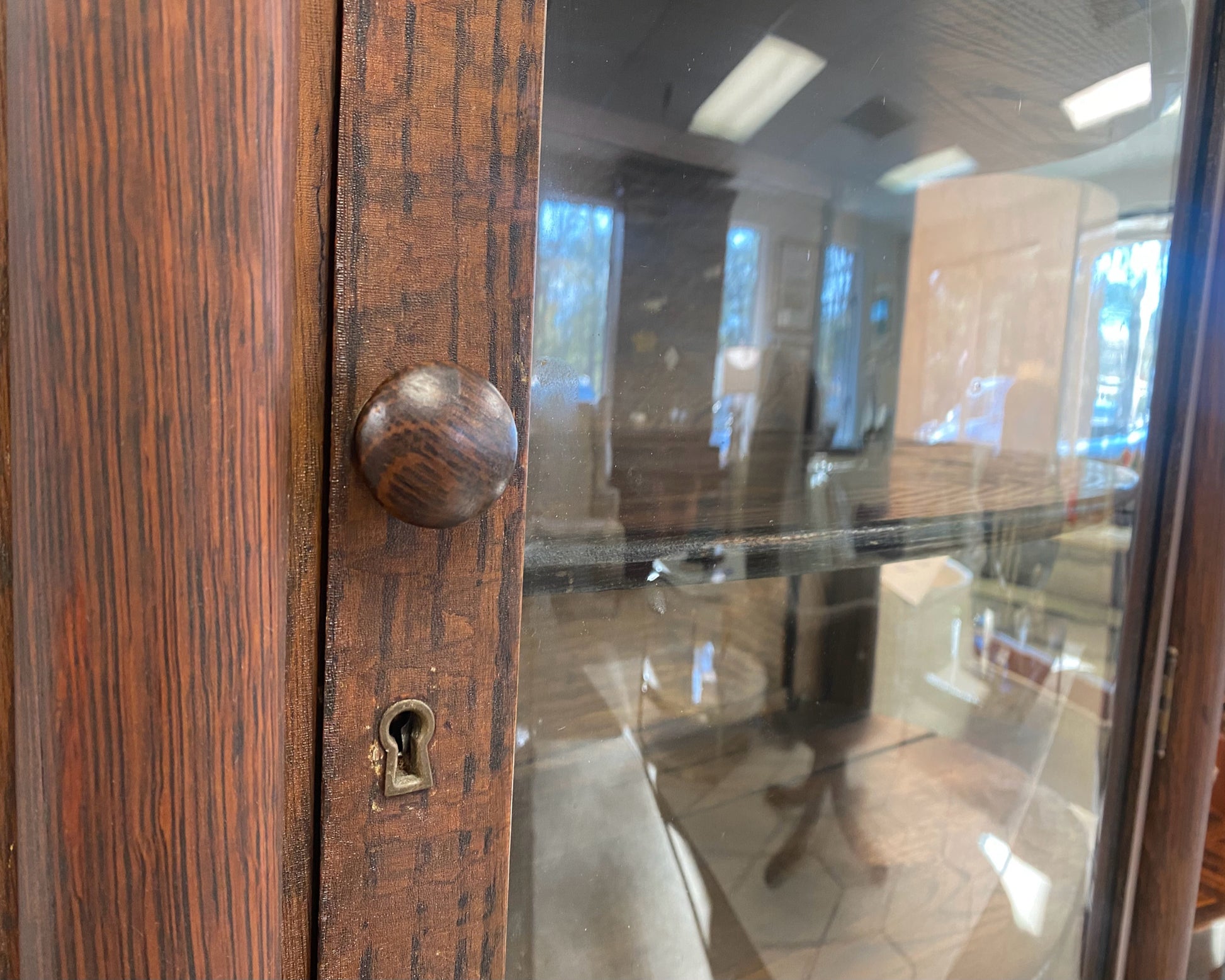 Vintage Oak Display Cabinet with Curved Glass