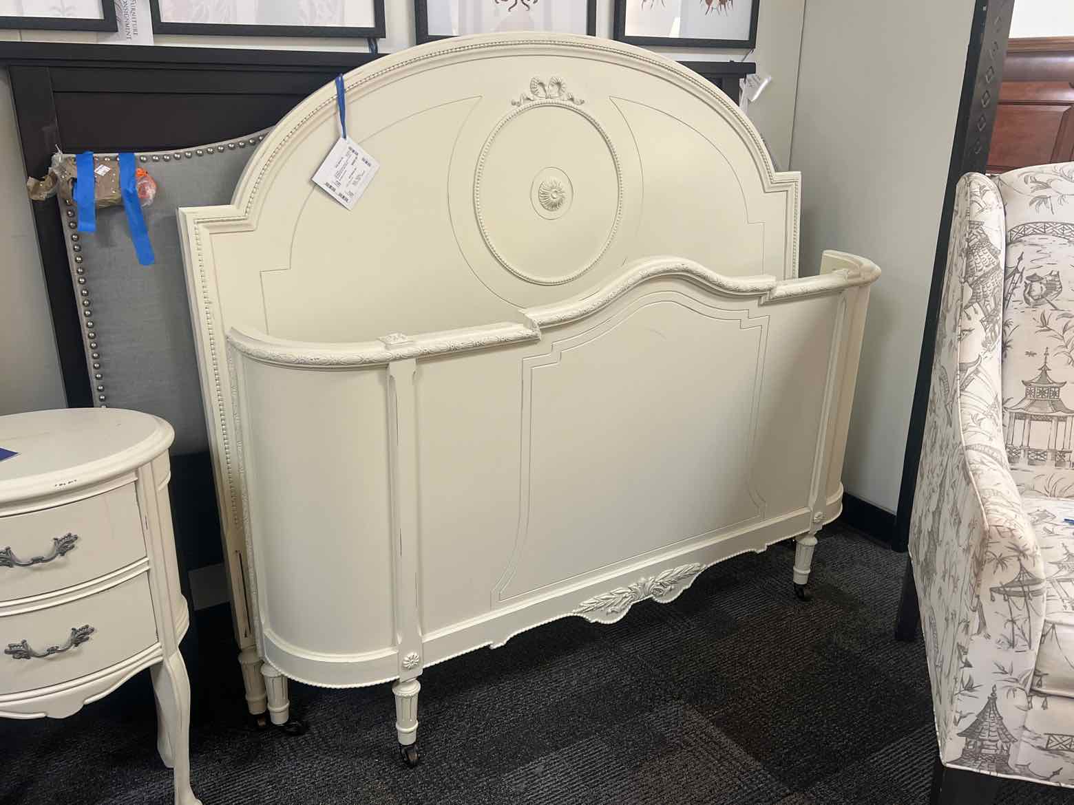 RH Baby & Child 'Liane' ivory carved full bed (hb, fb, rails, slats)