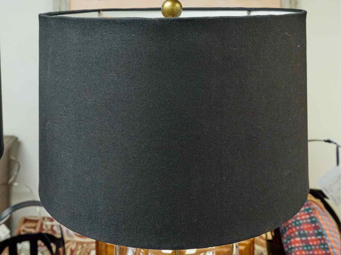 Pair of Glass & Brass Base Lamps with Black Drum Shades