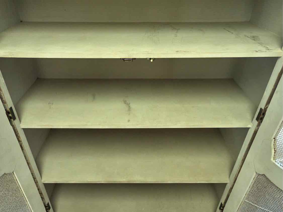 Rustic French Inspired Display Cabinets in Grey Finish with Wire Mesh Doors