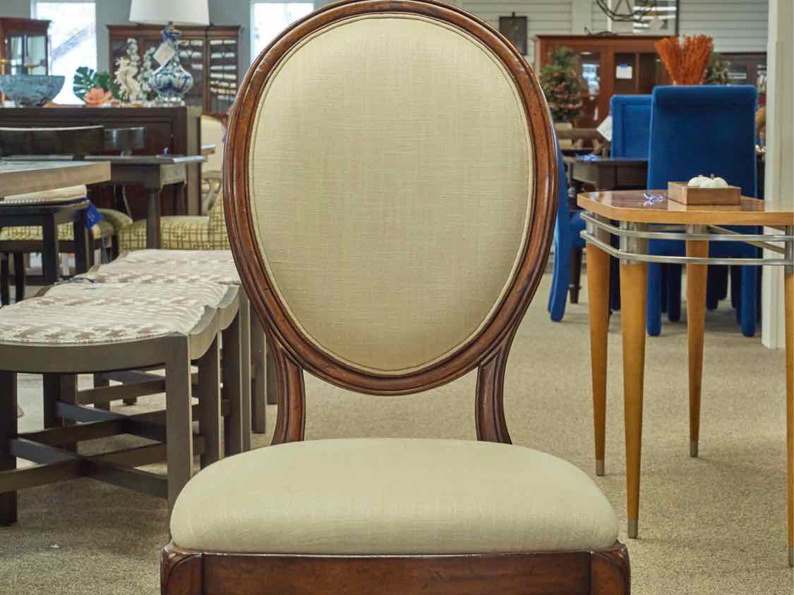 Set of 6 Balloon Back Dining Chairs in Ivory Linen Upholstery