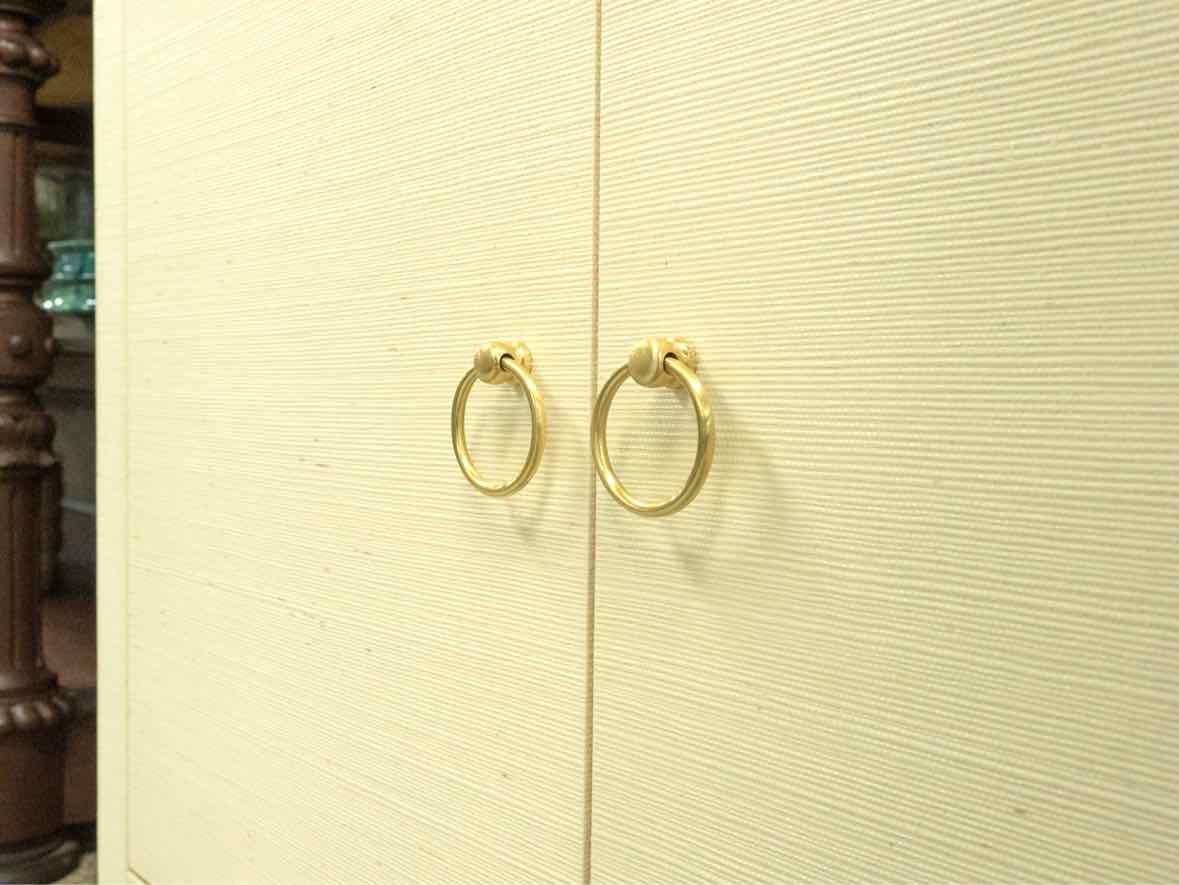 'Meredith' Extra Large Four Door Cabinet in Cream Canvas W/ Brass Hardware