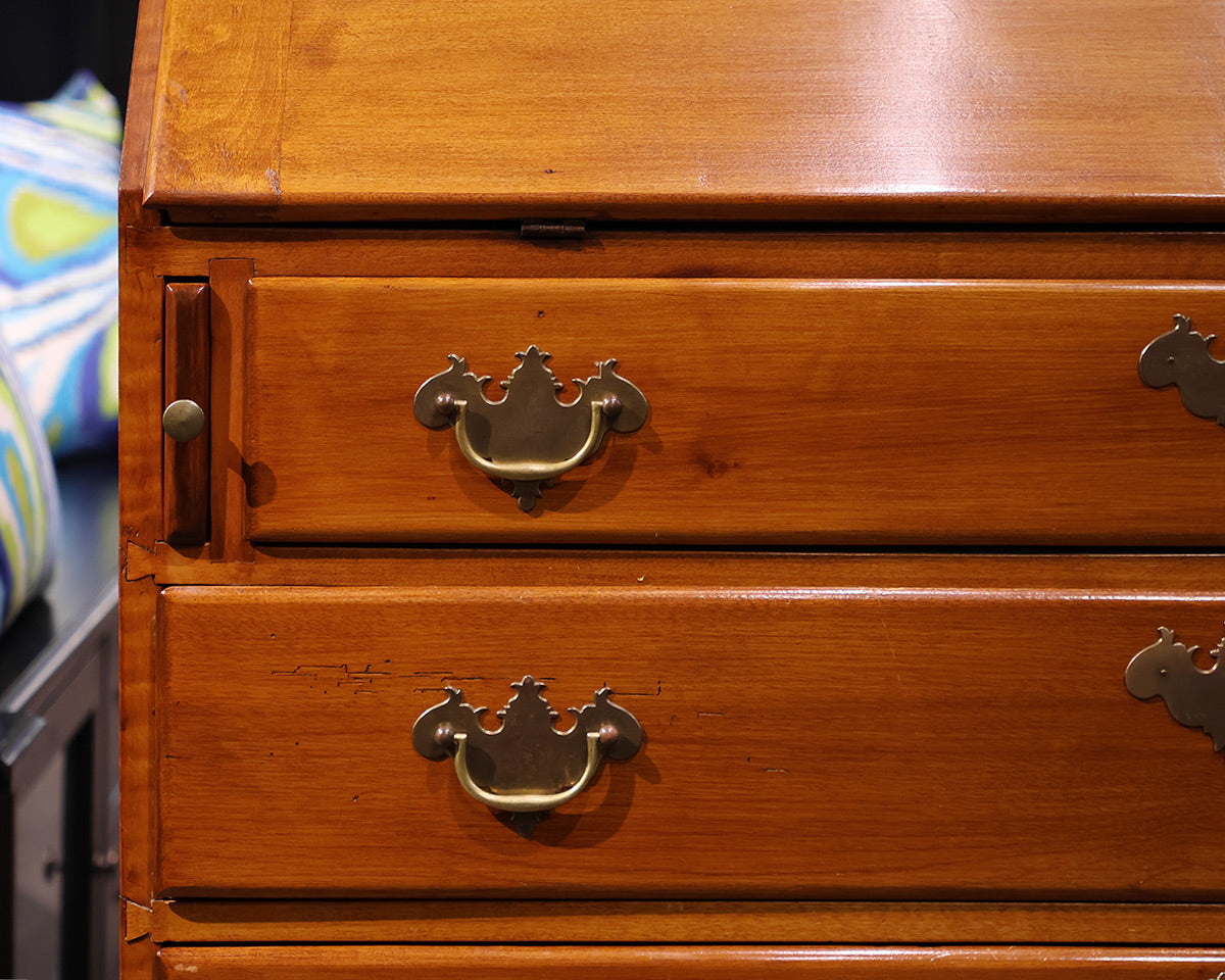 Vintage Maple Secretary Desk. 4 Drawers w/Brass Pulls.