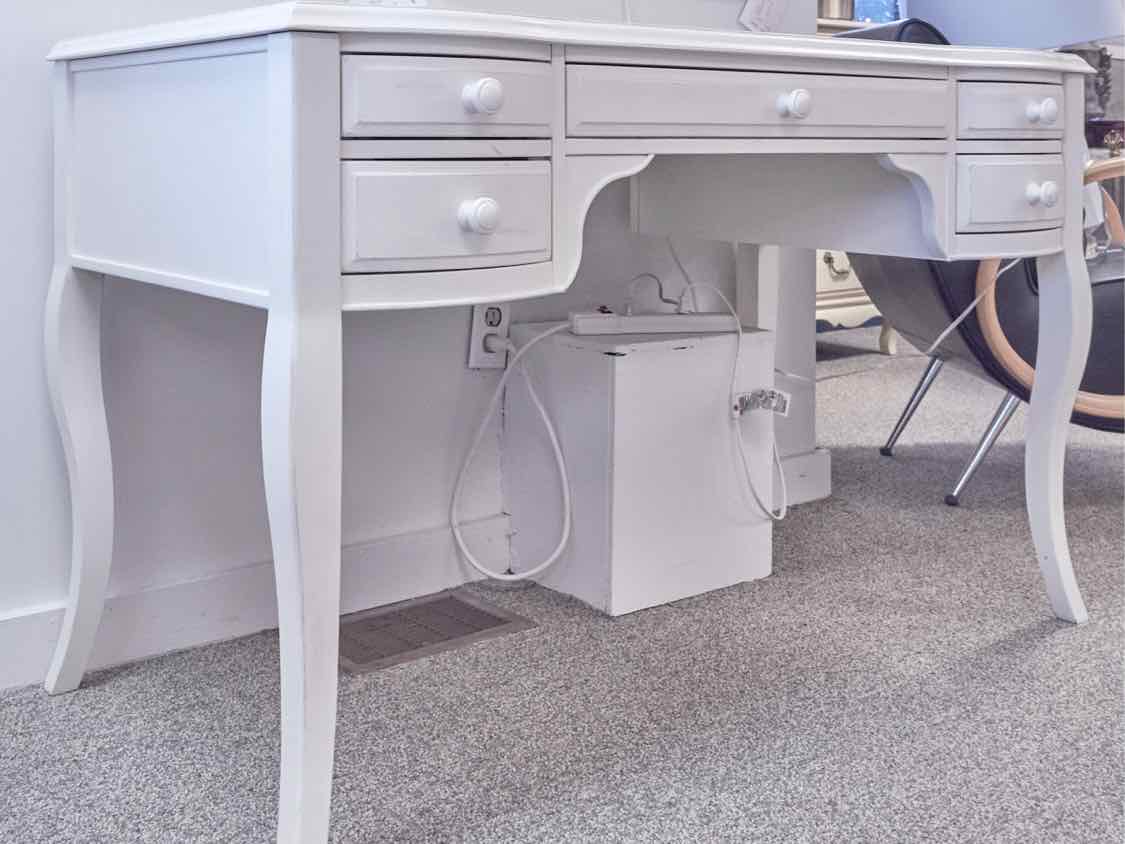 White Five Drawer Desk W/ Curved Legs & Matching Adjustable Chair