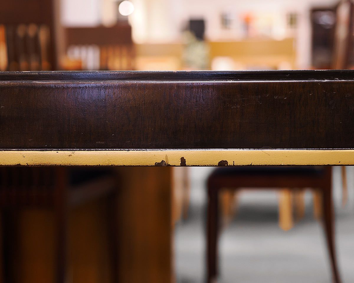 Carlyle mahogany table w/ gold accents and 2 20" leaves