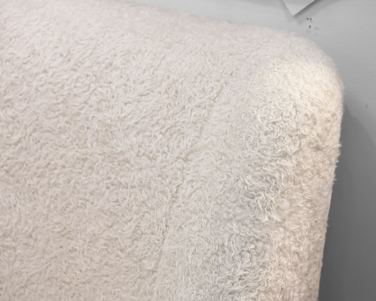 Large settee in a white boucle fabric. Metal base with chrome legs.