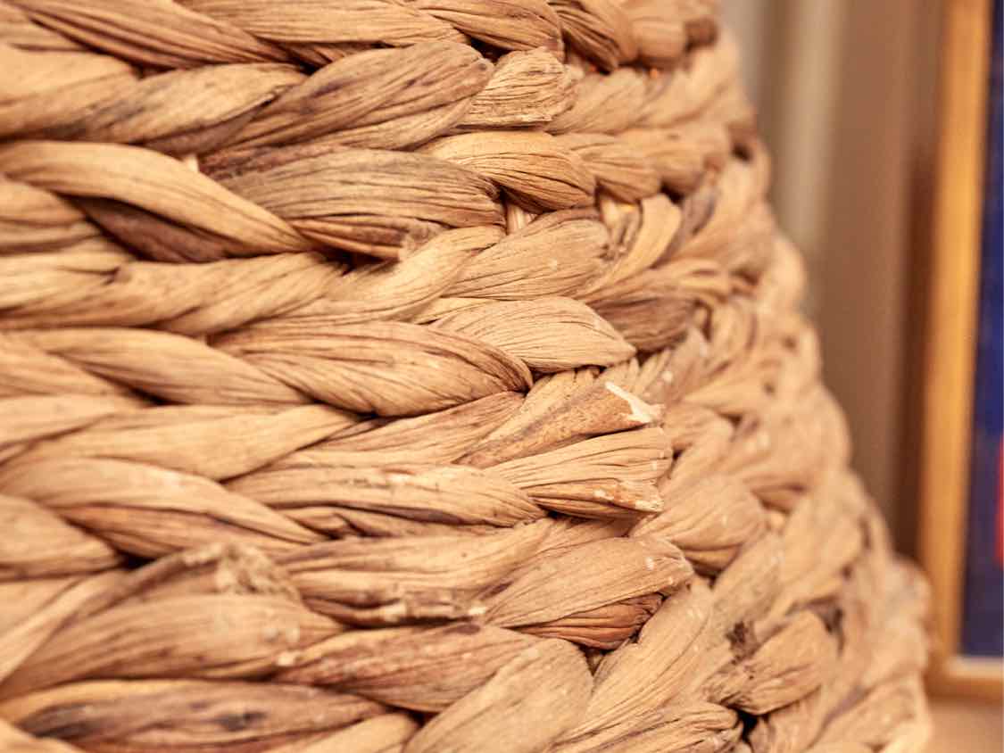 Black Finish Metal Floor Lamp With Seagrass Shade