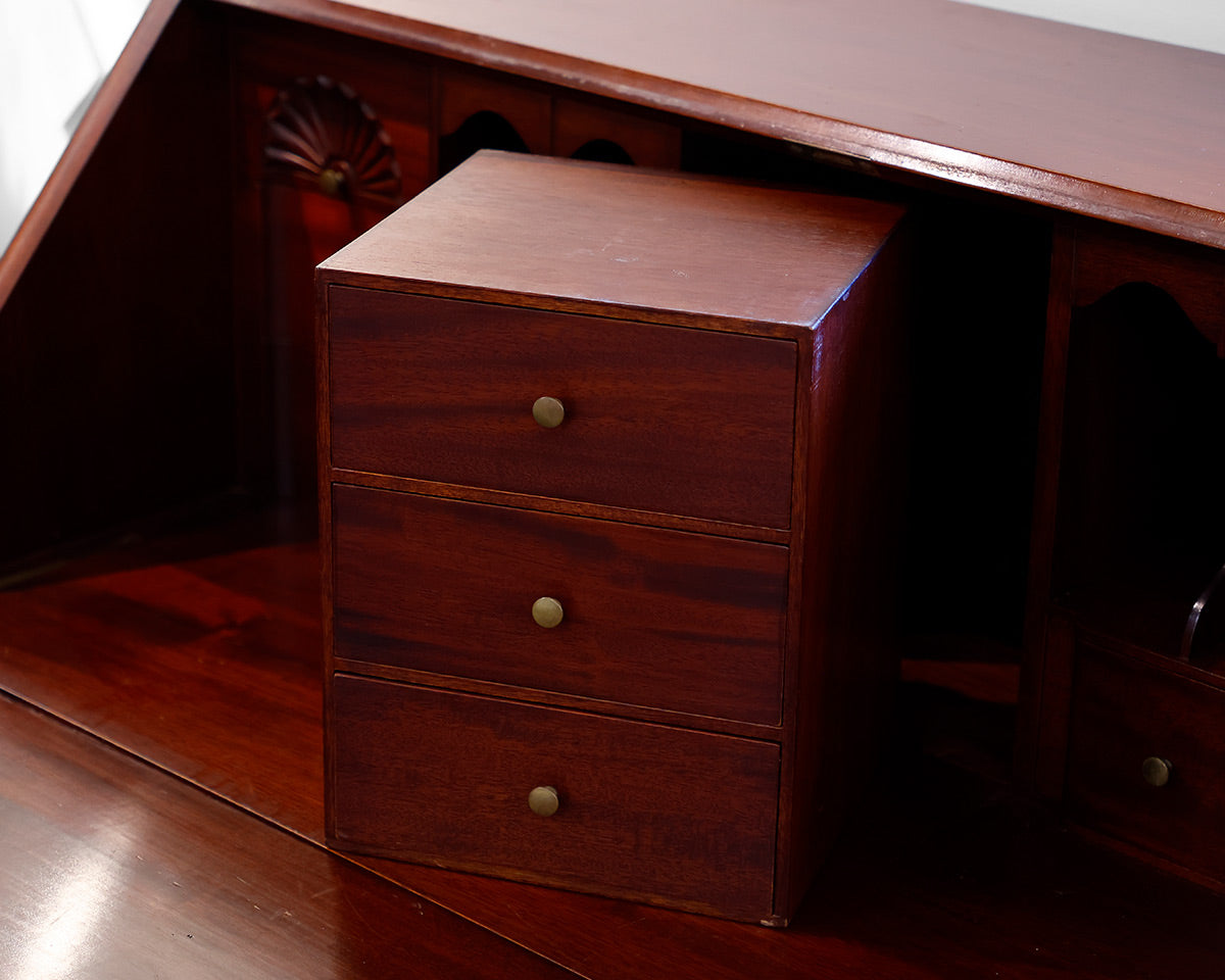 Chippendale style mahogany block-front secretary desk w/ 4 large drawers and 8 small drawers
