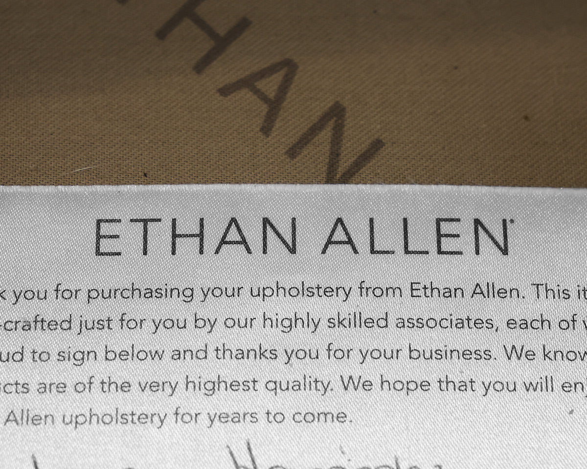 Ethan Allen Chadwick Sofa in Pale Grey Velvet on Bun Feet