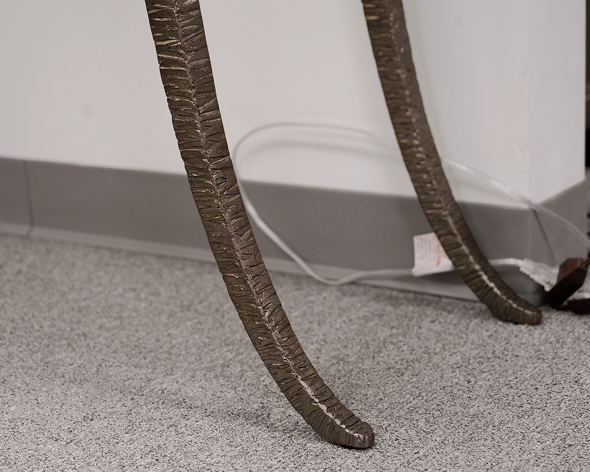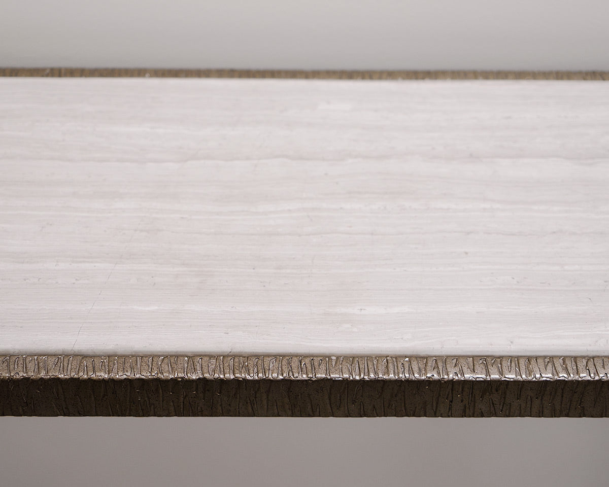 'Melange Sabre' Console Table With Brushed Nickel Textured Base With Stone Top.