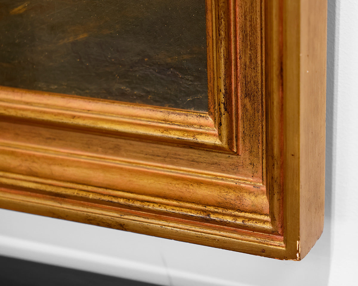 Antique Oil Painting of Ships at Sea, in gold frame