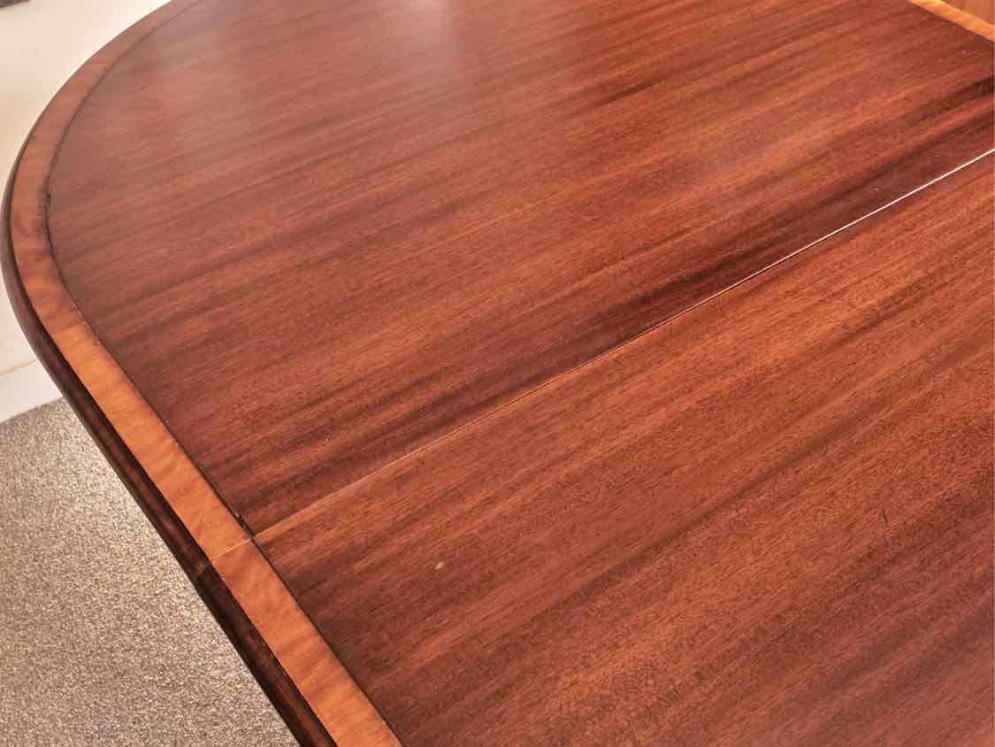 Benchmade Mahogany Double Pedestal Dining Table with Tulip Wood Border