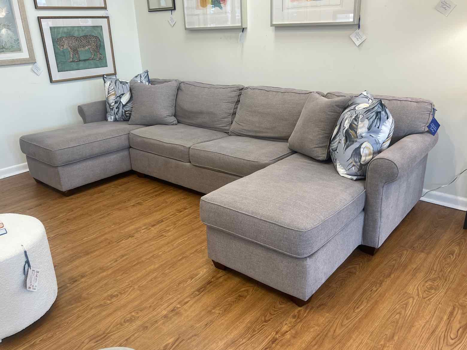 'Marshall' u-shaped grey sectional with two chaises, sock arm and 2 throw pillows