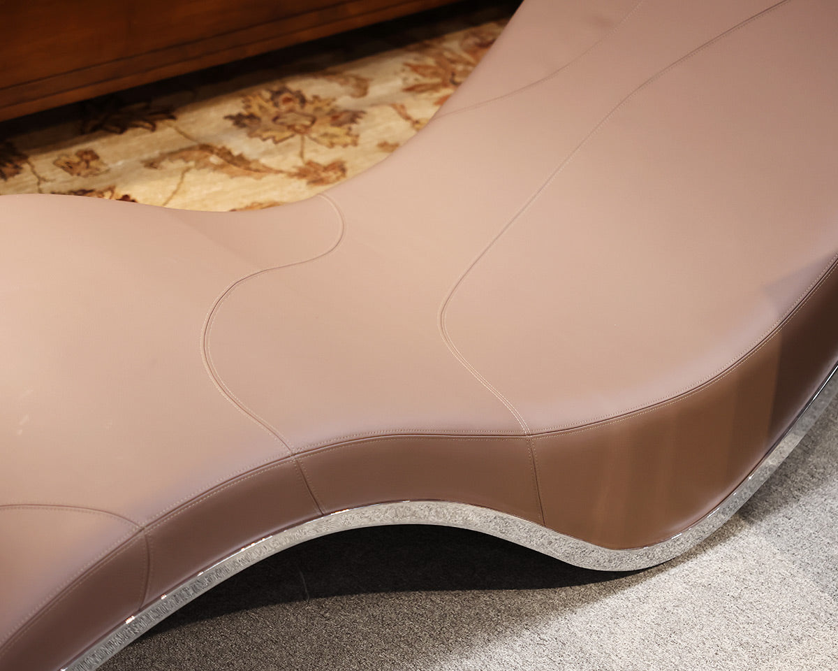 Mocha leather chaises w/ stitching