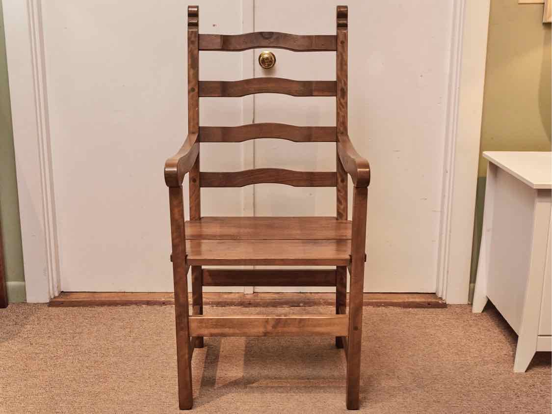 Domain Pine Plank Top Table (2) Drawers Turned Legs & (2) Arm (6) Side Ladder Back Chairs