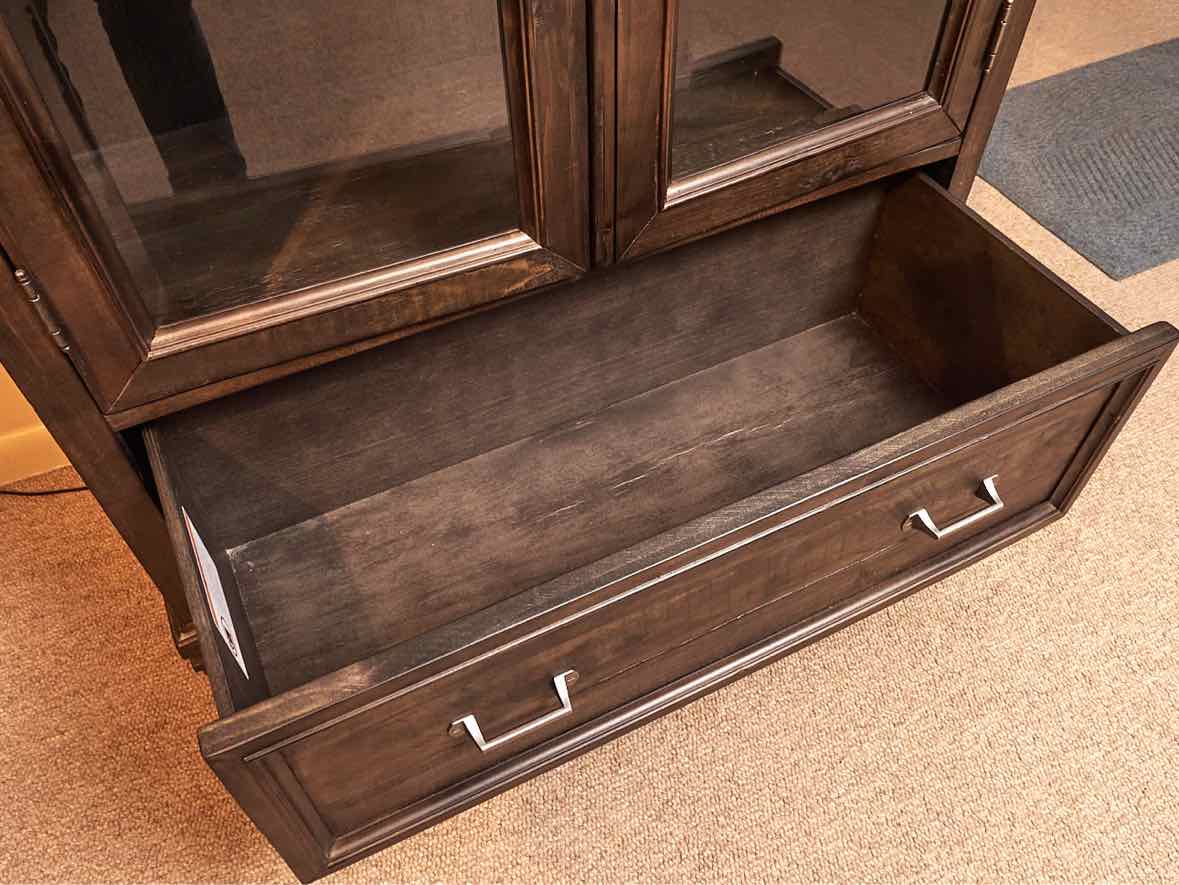 'Driftwood Charcoal' Finish (2) Glass Door (1) Drawer (3) Shelf Light Enterior Display Cabinet