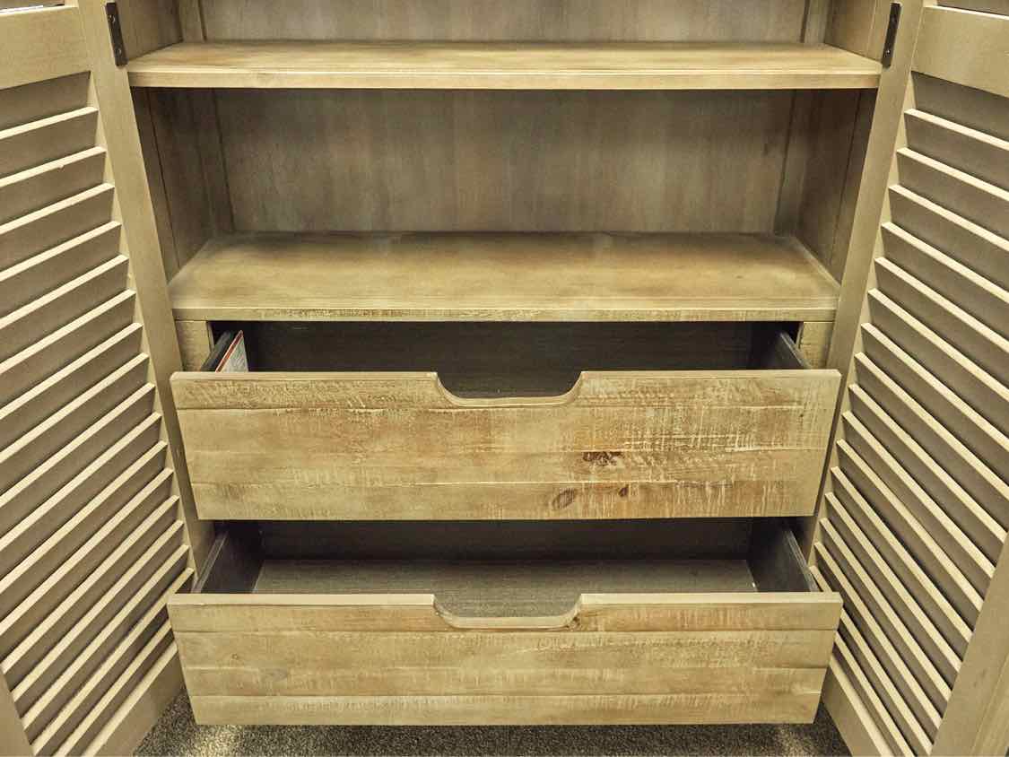 Driftwood Grey Two Door Armoire W/ 3 Shelves & 2 Drawers