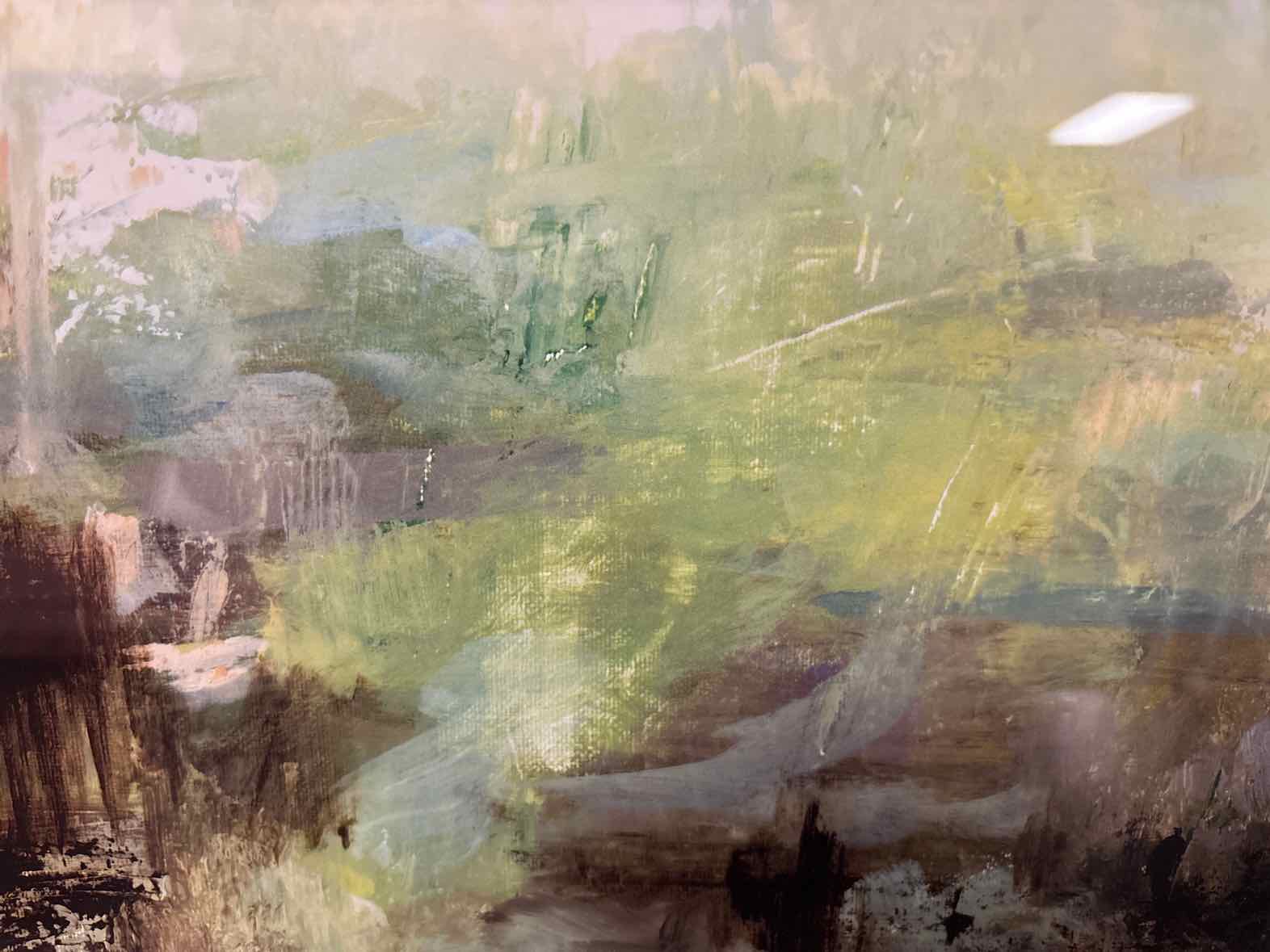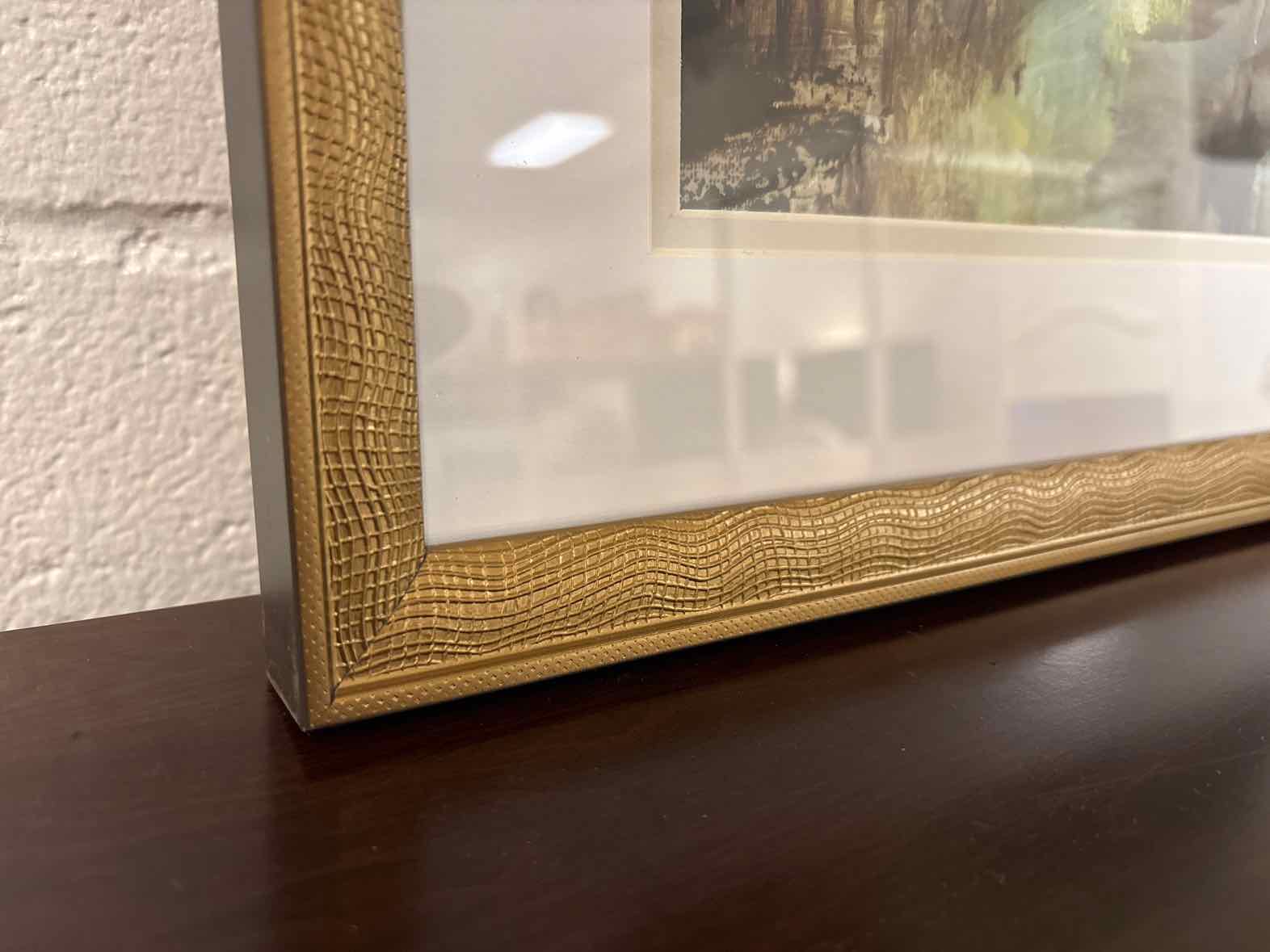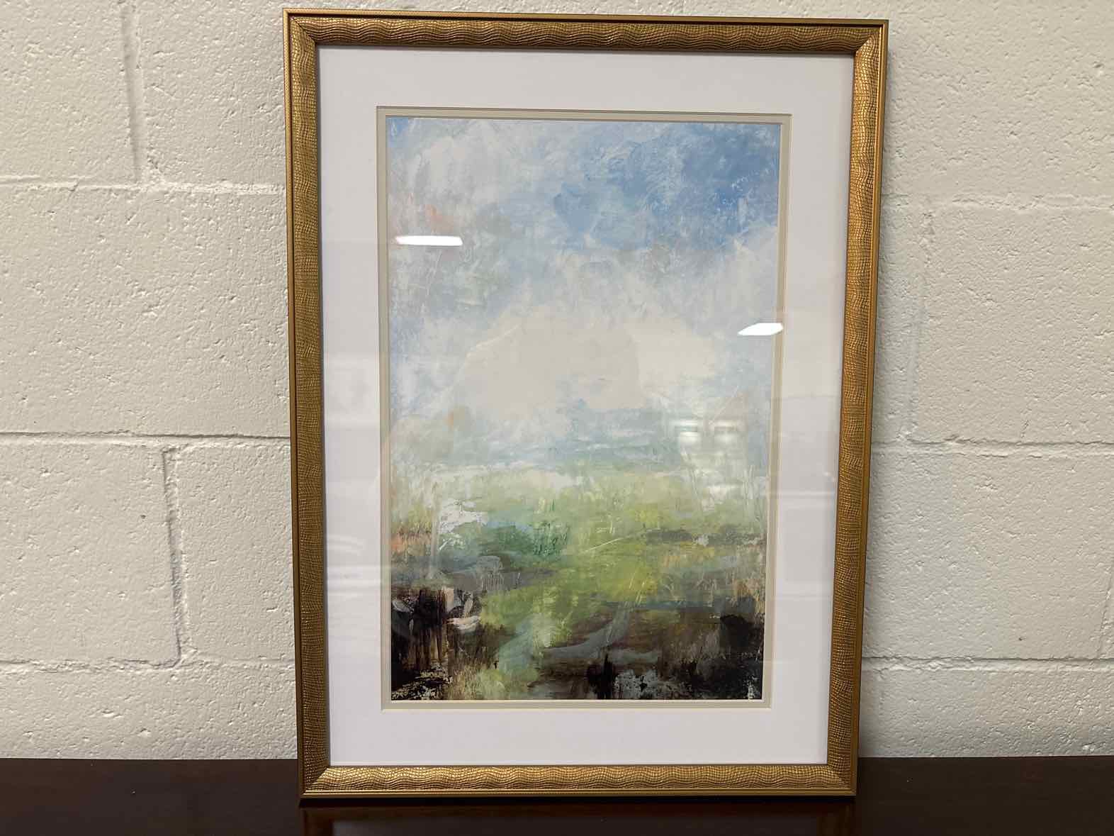 'Emerald Coast S/2 A' atmospheric landscape with greens and blues in an antique gold frame