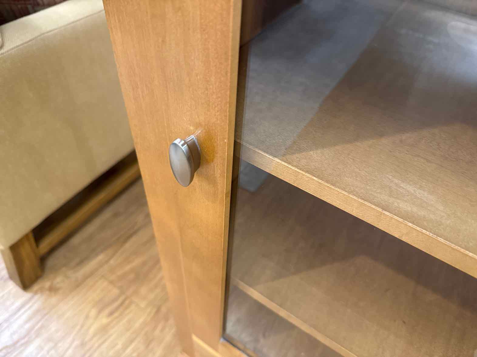 'Elements' solid maple 1 drawer, single glass door media display cabinet with 3 adjustable shelves