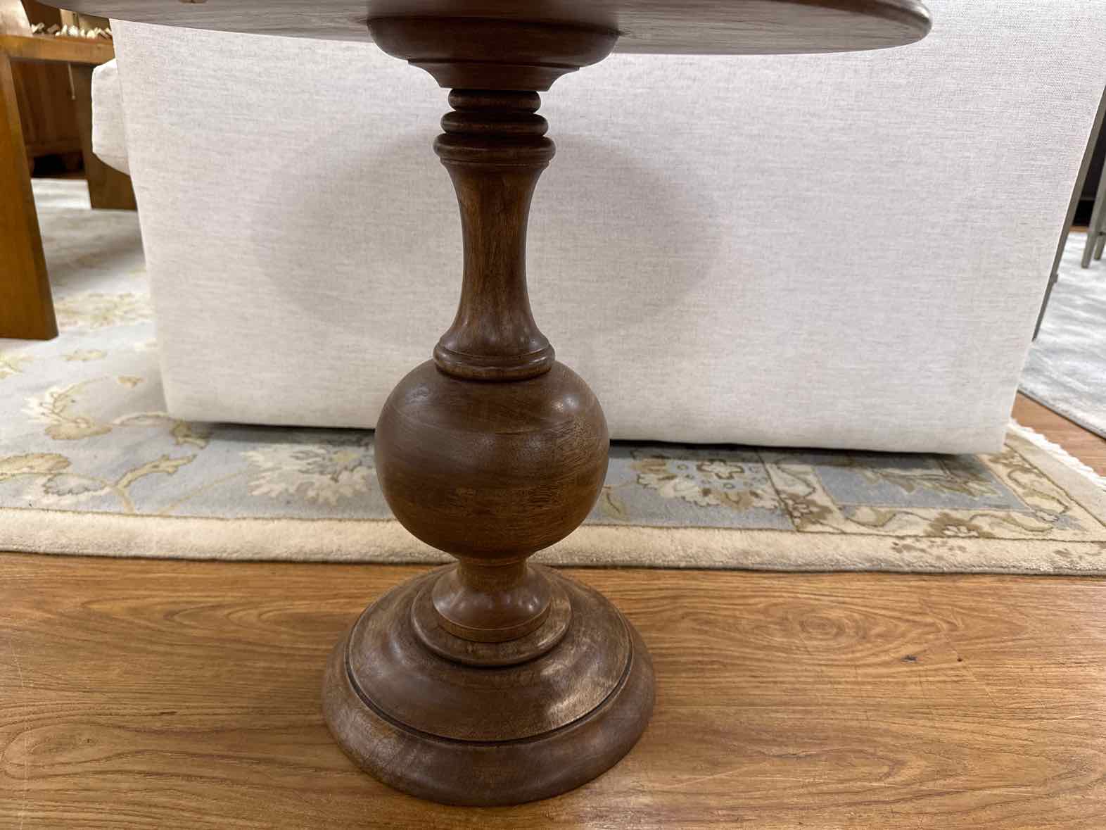'Turner' mango wood pedestal accent table in medium brown hand-rubbed finish