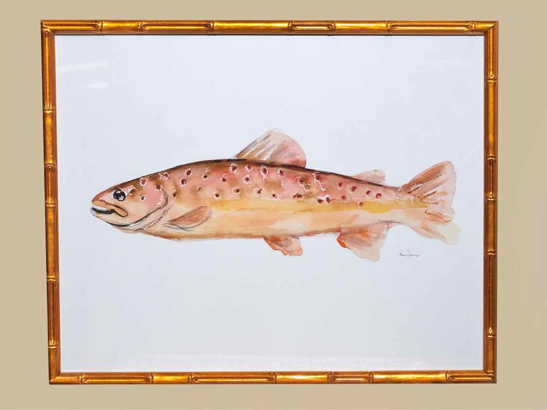 "Colorful Trout II" giclee in antique gold bamboo frame