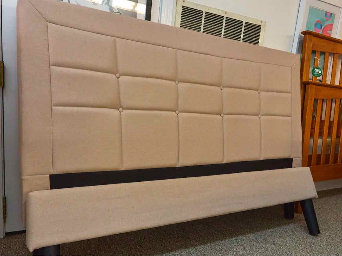 Full Sand Color Upholstered Button Back Headboard Bed