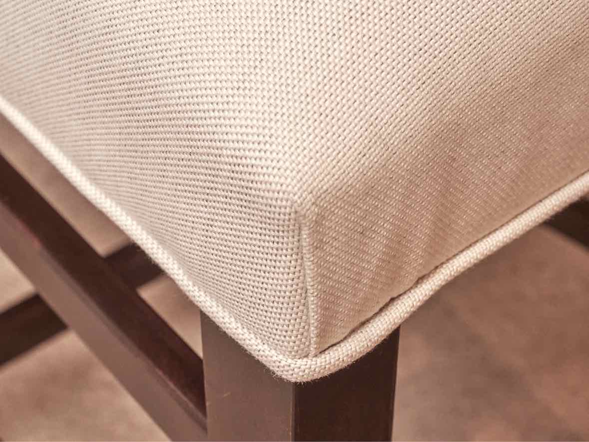 "Harrison" bar stool (80121) in cherry with Classic Derby finish and Sailcloth Sailor fabric