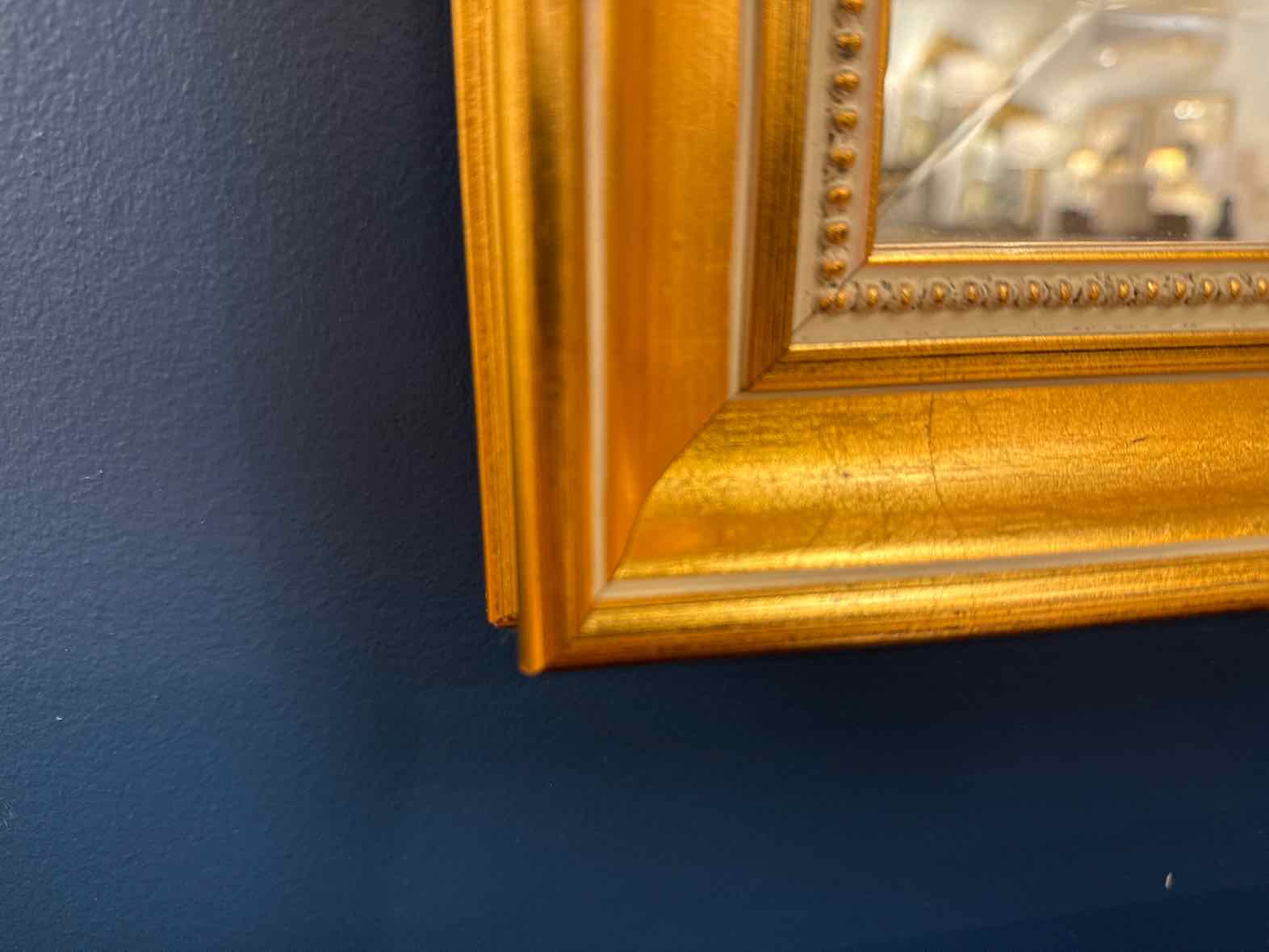 Gold framed mirror with beveled glass, can be installed vertically or horizontally