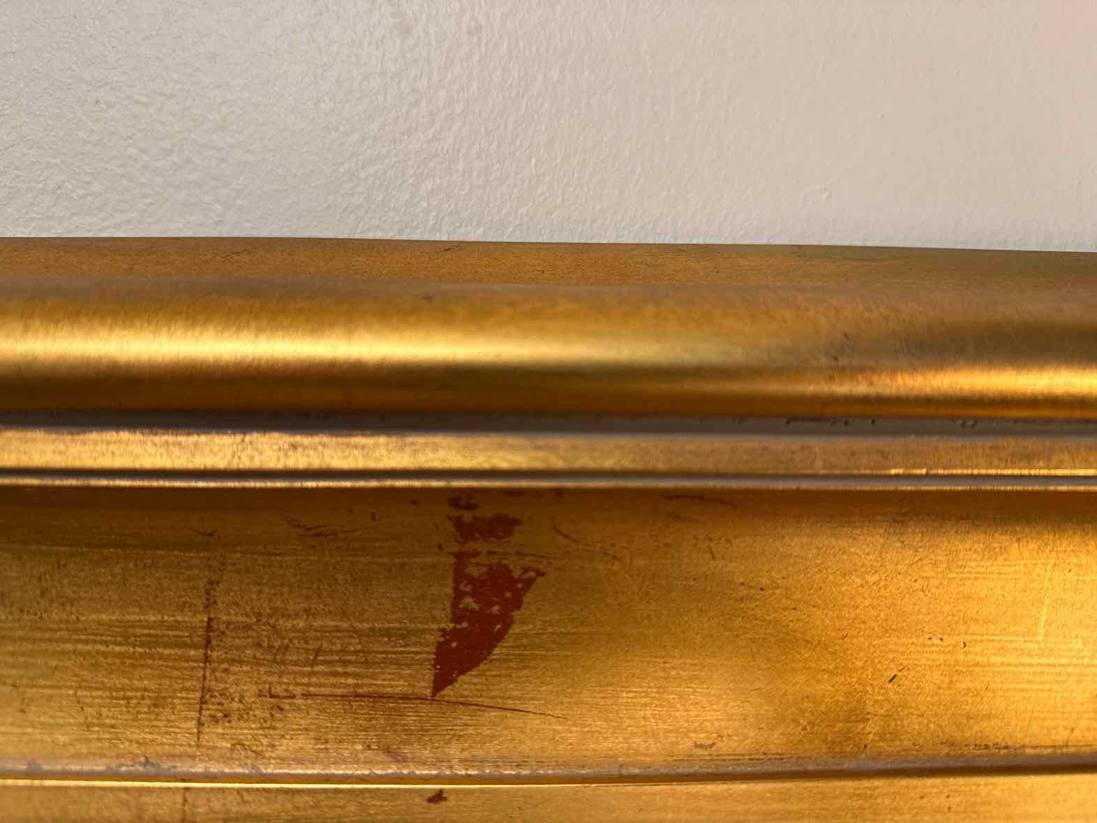 Beveled wall mirror with gold leaf frame, lightly distressed (may be installed horizontally or vertically)