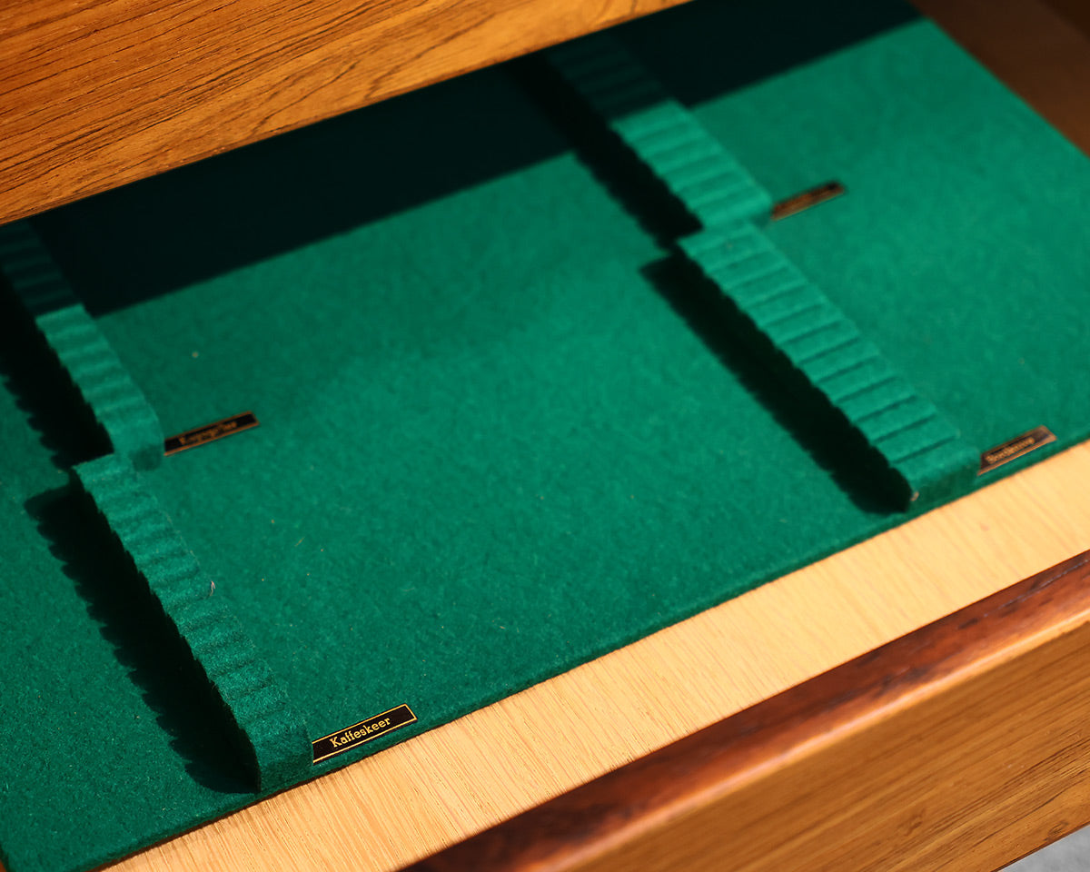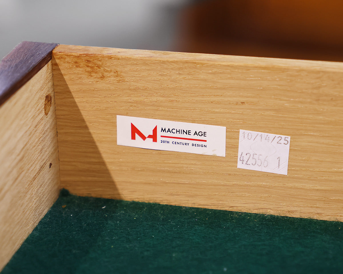 Six-Leg Custom Denmark Rosewood Credenza With 5-Drawers and Cabinet Storage With Adjustable Shelving.