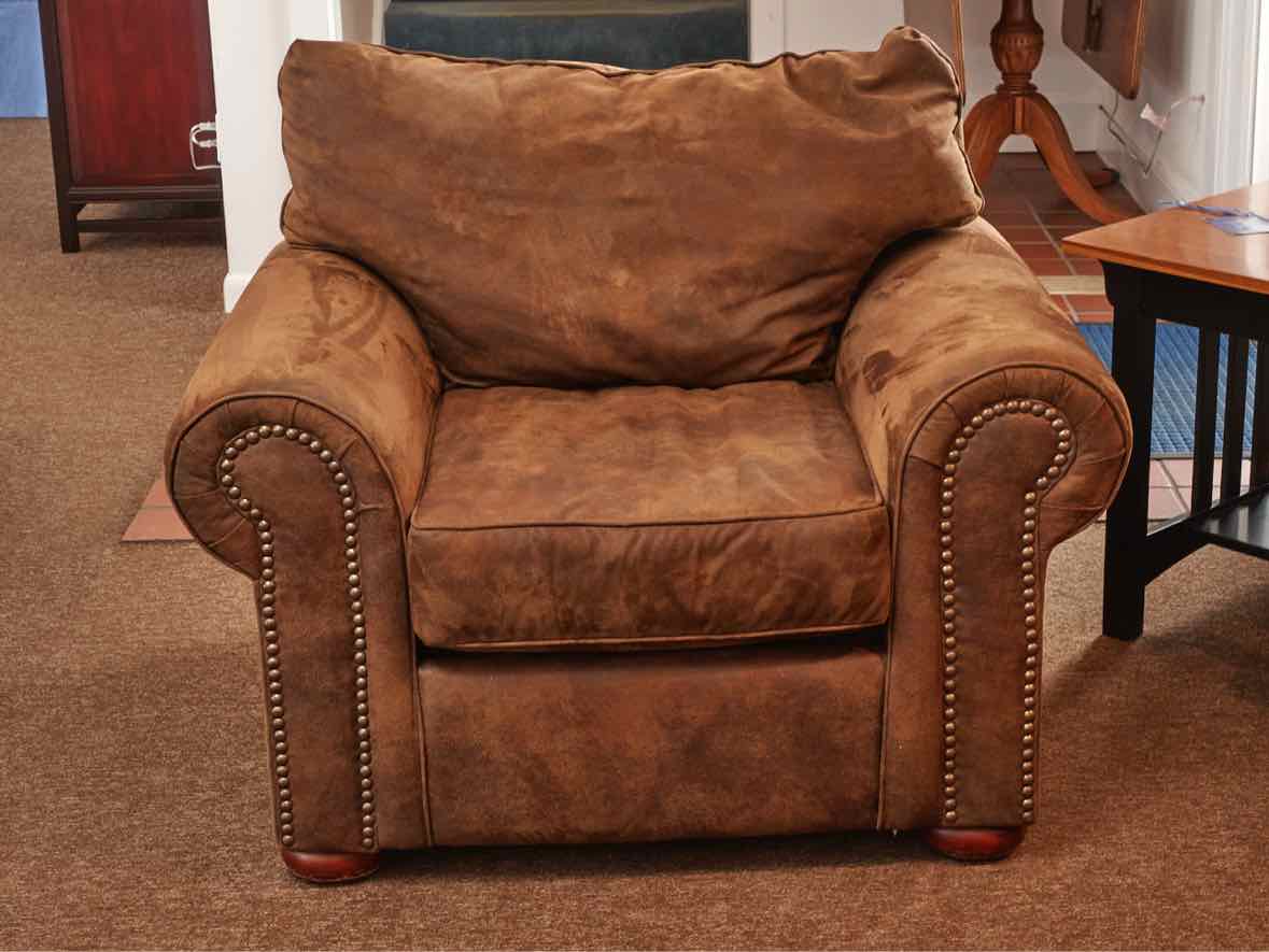 Klausner Micro Fiber Brown Suede Nailhead Trim Bun Feet Chair